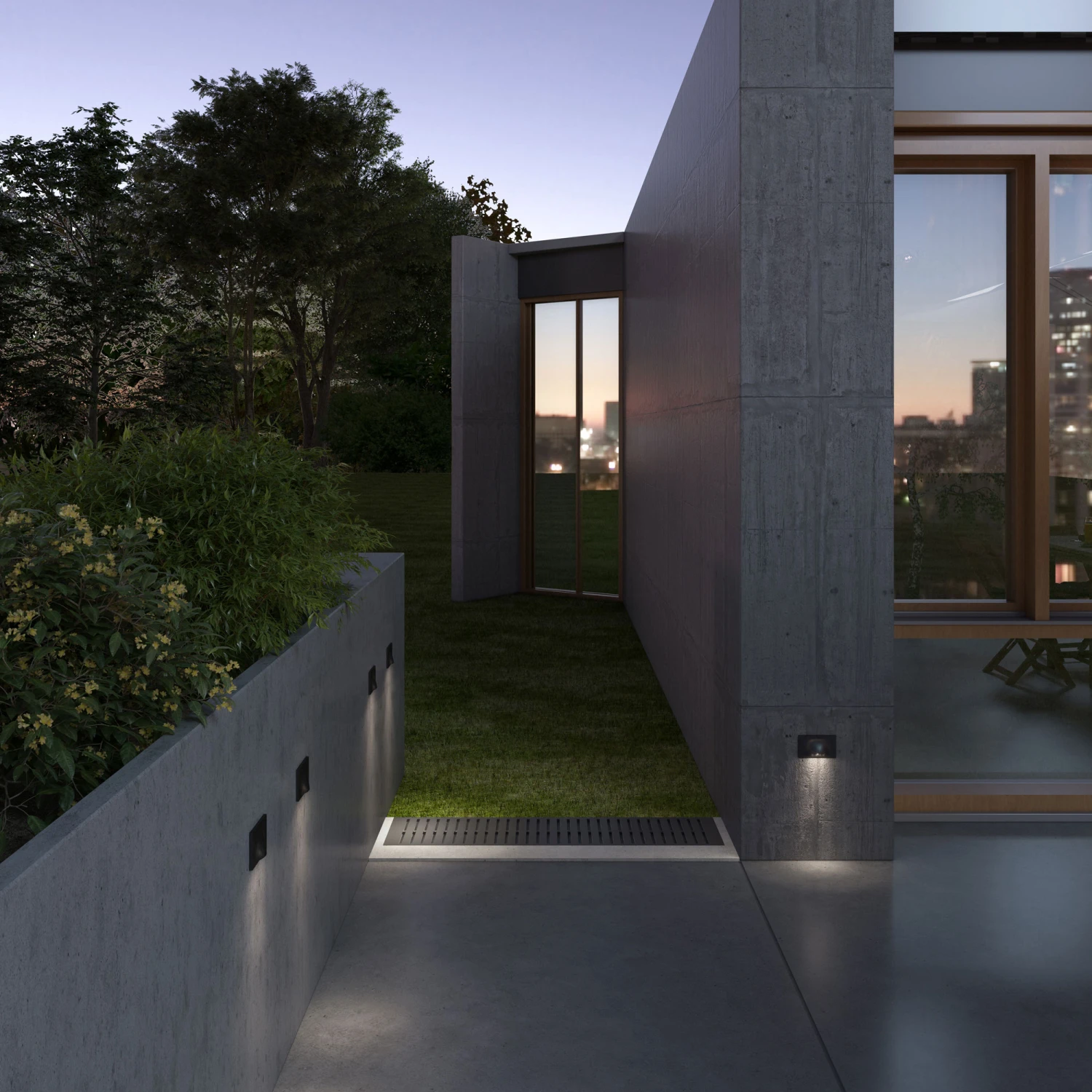 The Horizontal LED Step Light with Eyelid is ideal for decks and stairs in indoor and outdoor applications. Die-cast aluminum housing with faceplate available in White, Black, or Silver Grey finish. Non-visible hardware. 120VAC direct connection. Fits on a standard junction box (3 inch length x 2 inch wide x 2.5 inch depth). Junction box must be mounted horizontally. ETL listed. Recommended dimmers: Dals Smart Dimmer SM-DIMSW, Leviton 6615P, Leviton VPE06-1LZ, Lutron CTCL-153P, Lutron DVELV-300P, Lutron SELV-300P.