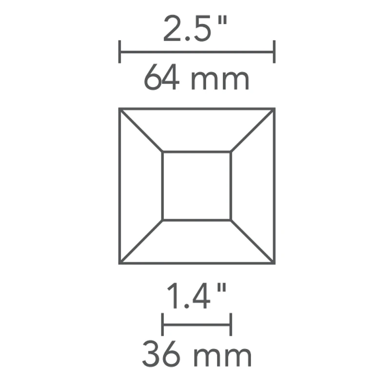 2 Inch Square Flangeless Bevel Lensed Shower Trim is made of die-cast aluminum with minimal thickness. Available in Antique Bronze, Black, Satin Nickel or White finish. White can be field painted to match adjacent ceiling finish. 2.5 inch outside dimension with 1.4 inch aperture. ETL listed. Suitable for wet locations. LED module included in housing. For use with Element Lighting 2 inch square recessed housing for flangeless trims, sold separately.