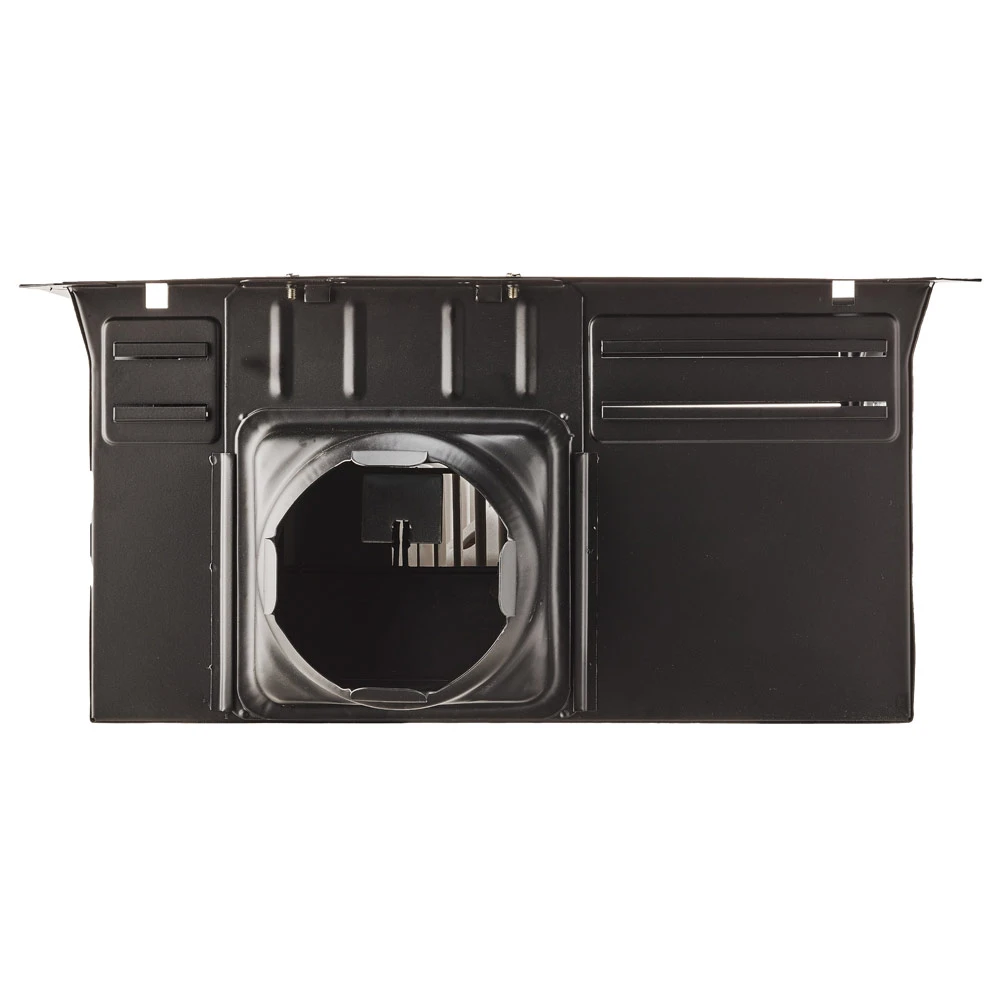 This IC-rated fixture is suitable for new construction or remodel applications and fits with 2 x 8 inch joists. Articulating expandable anti-vibration brackets and a connector for 4 inch ducts are included. The fixture has rust-proof steel motor housing, a built-in backdraft damper and thermal shutoff. It cannot be installed directly over a tub or shower enclosure. UL listed when used with GFCI branch circuit wiring.