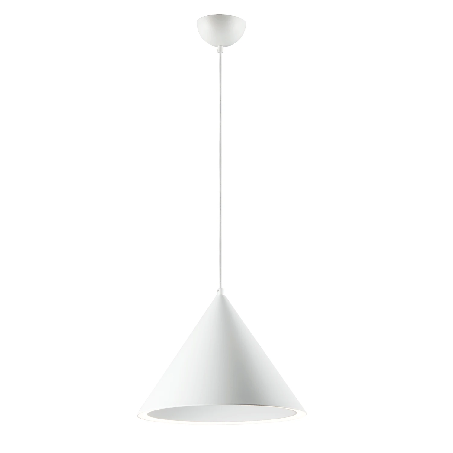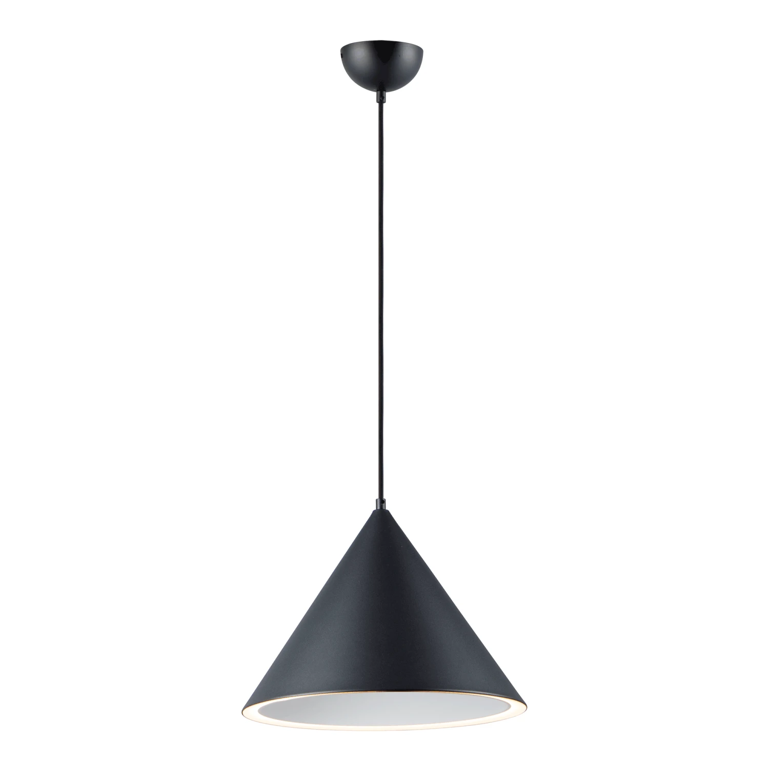 The Abyss Pendant is a classic cone pendant available in Matte Black or Matte White. Appearing typical from the outside but take on a different personality from below. These pendants are illuminated on the bottom perimeter creating a black abyss on the inside generating an interesting lighting effect. Hang as a statement piece over a task area or group to create an interesting effect. Available in two sizes. Includes field cuttable wire. Dimmable with LED compatible dimmer. Canopy: 4.74 inch diameter x 2.5 inch height. ETL listed.