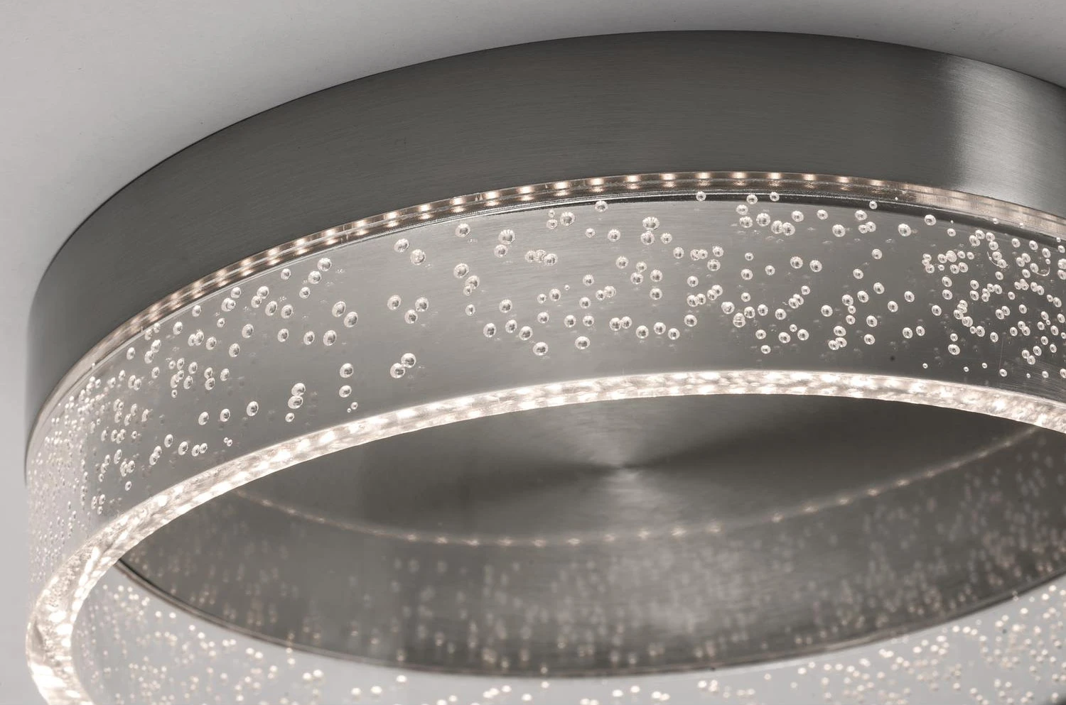 The Maggie Ceiling Light Fixture features a clean and simple design with a round shape that has a Satin Nickel or Satin Brass finish and is complemented by a Clear bubble acrylic diffuser. Available in two sizes. Mounts to standard junction box, not included. Dimmable with the use of Triac/ELV dimmer, not included. ETL listed, damp locations.