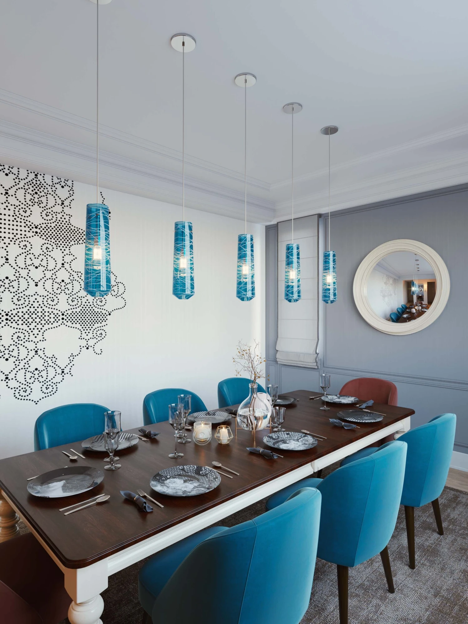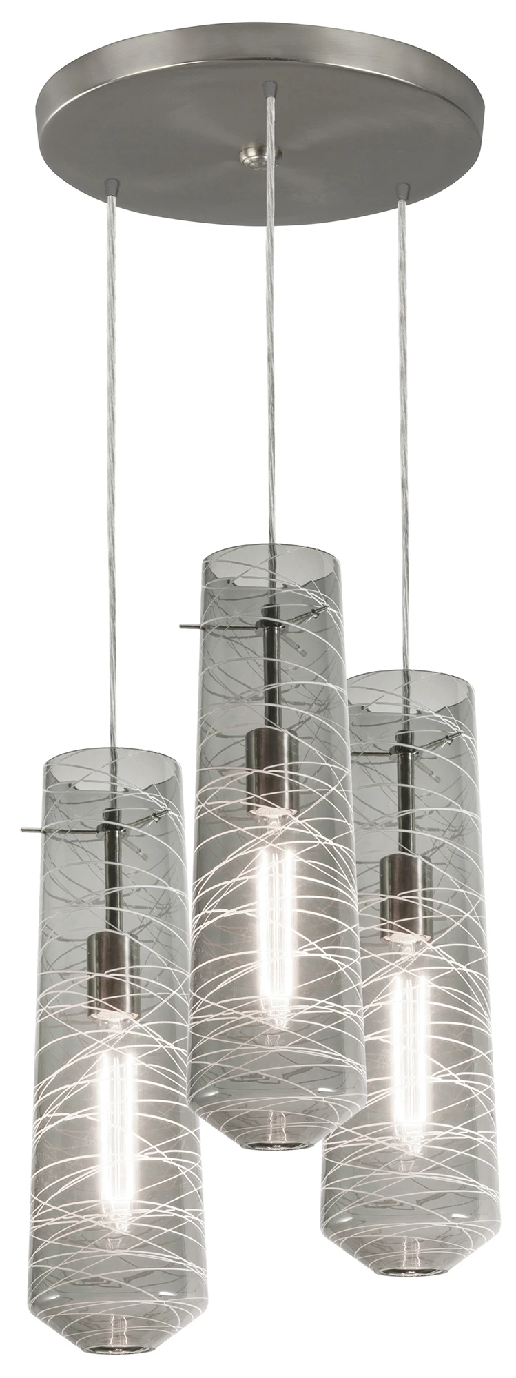 AFX’s Spun 3 Light Round Pendant combines simple design with artisan touches to create a truly unique contemporary look. This fixture prominently displays a trio of steel blue glass shades with a unique accent twirl to give it an eye-catching character. Each shade is home to an Edison bulb and suspended using a simple cord for a minimalist appeal.