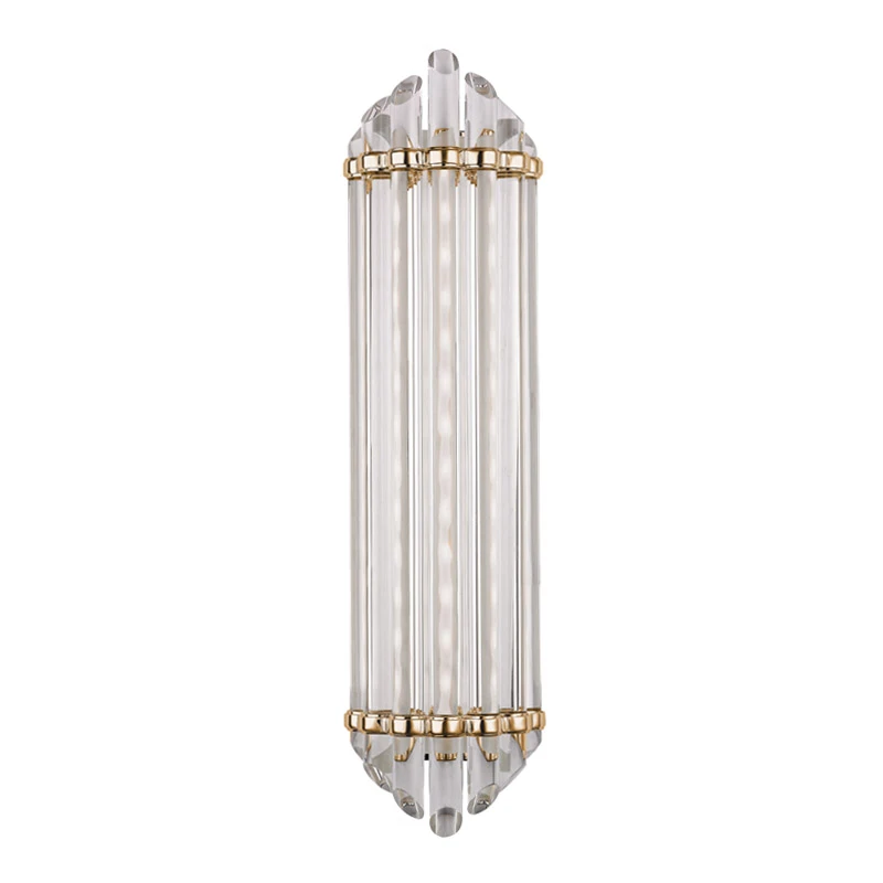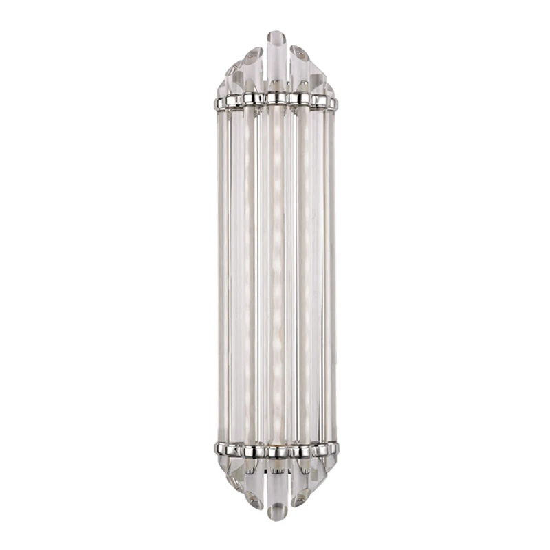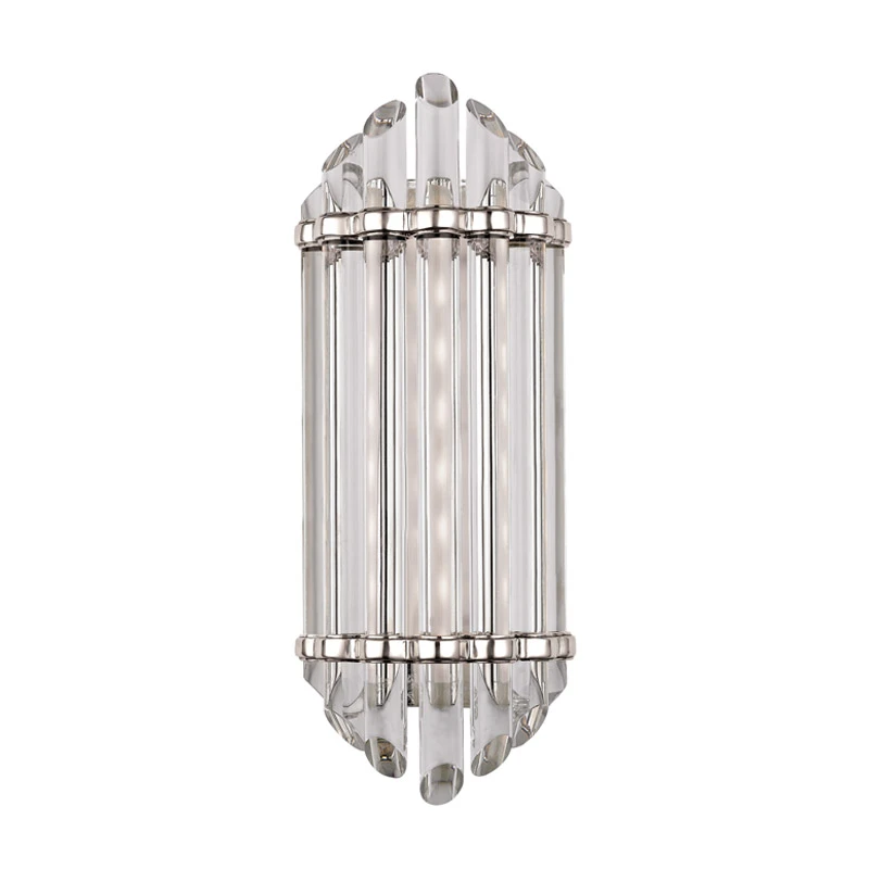 The Albion Bath Light features beveled crystal rods with an Aged Brass or Polished Nickel finish and is available in two sizes.