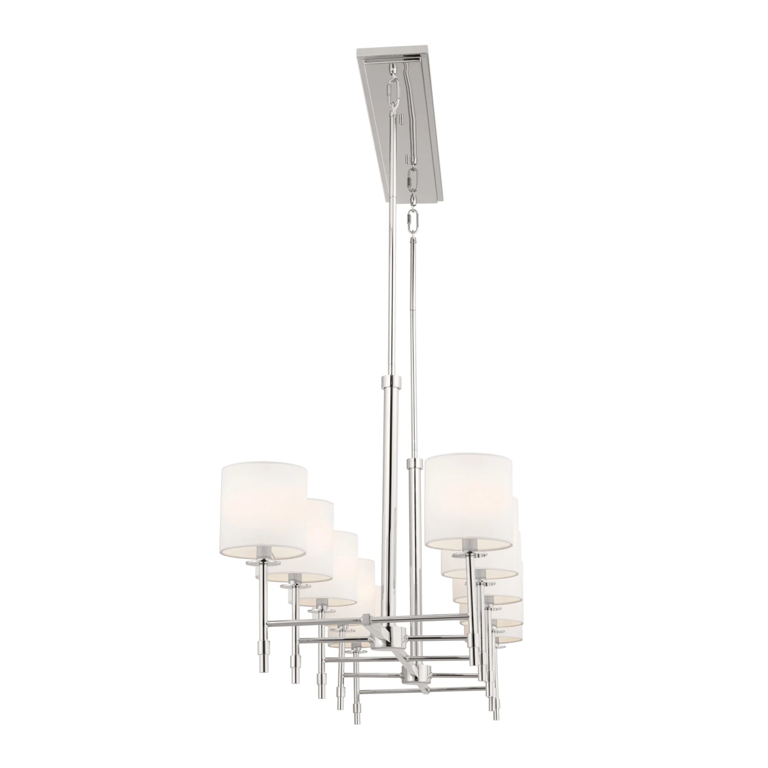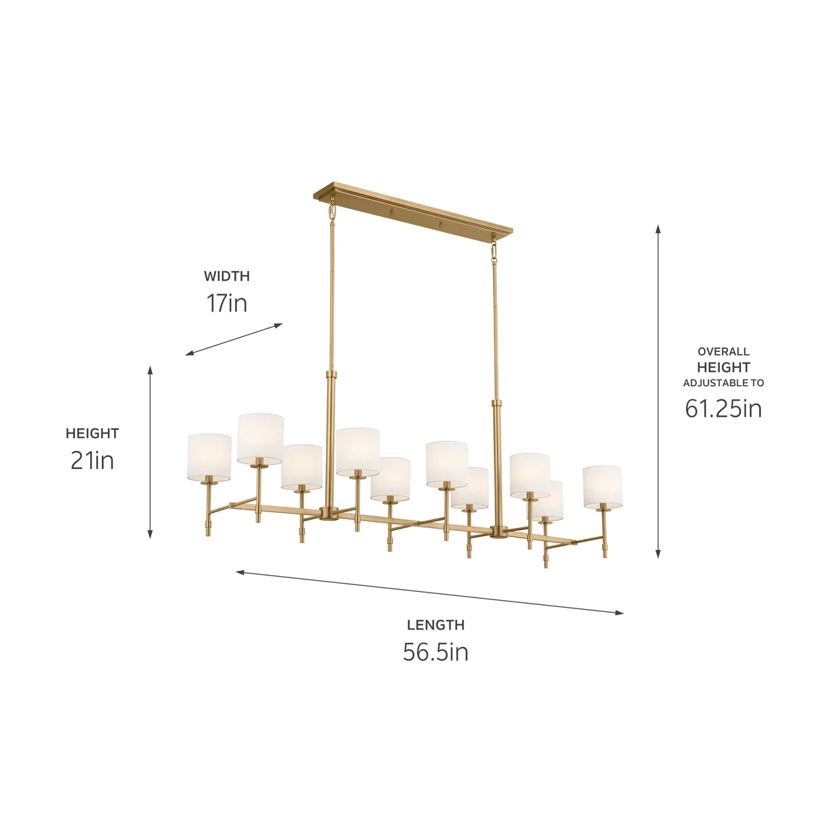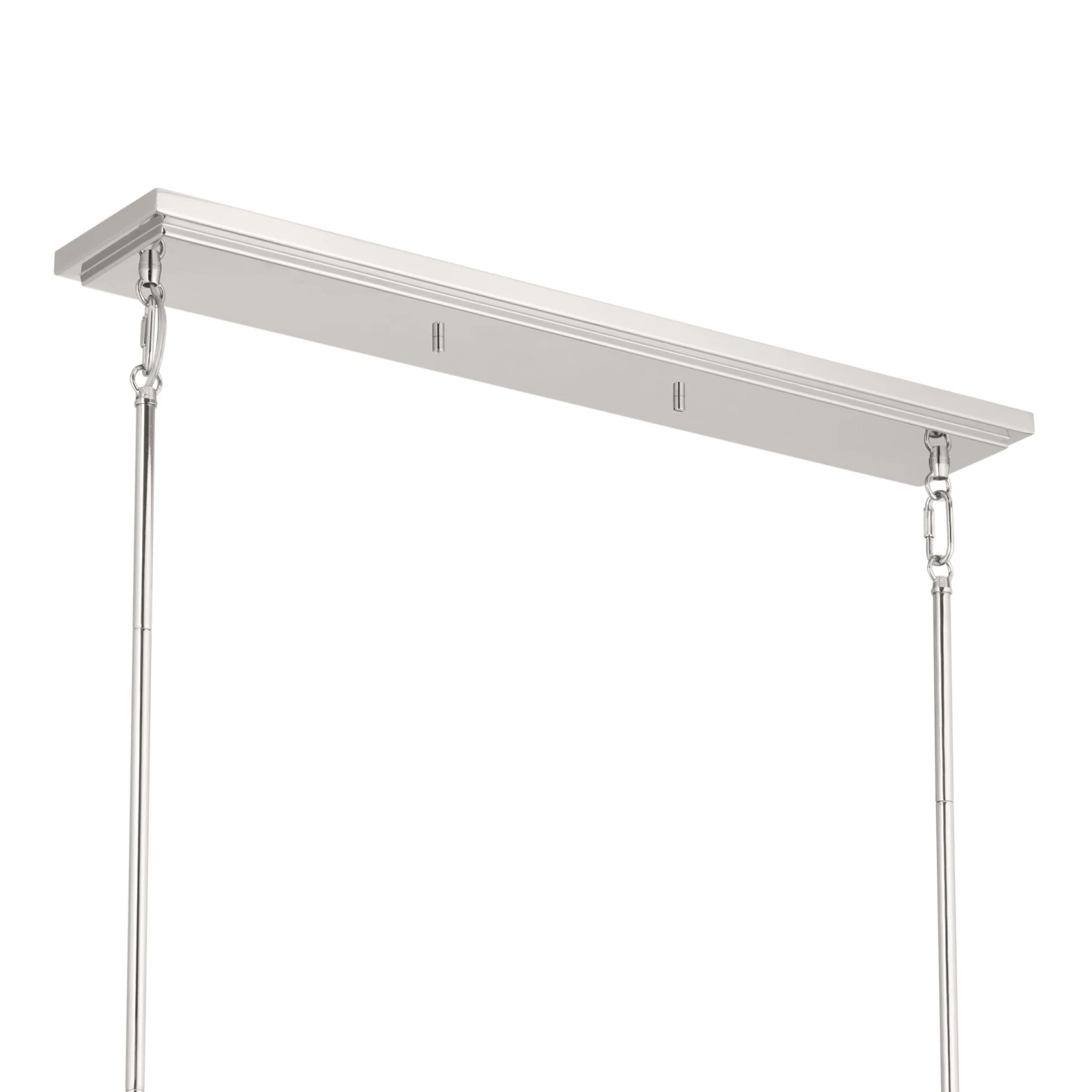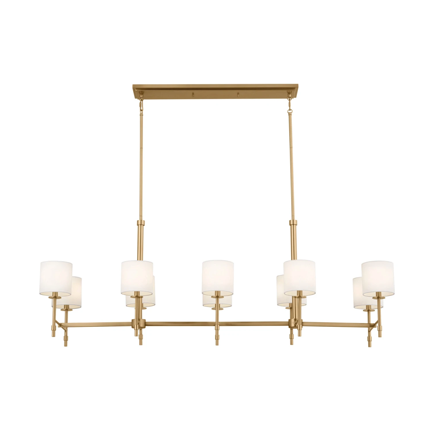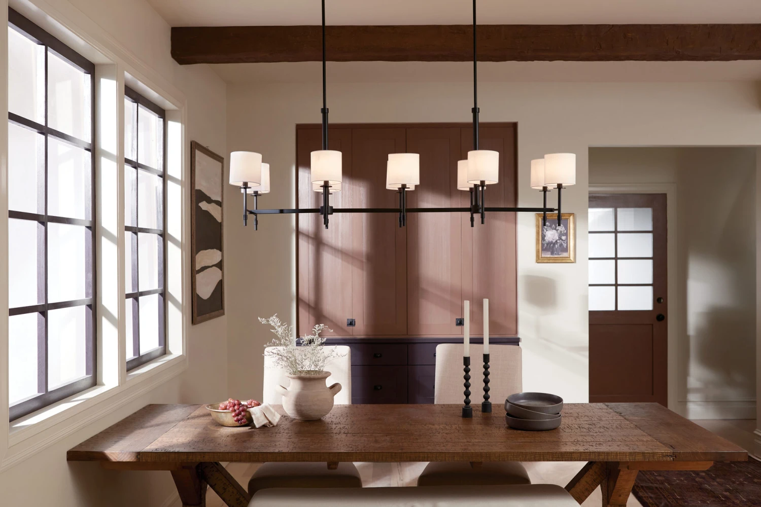 The Ali Linear Chandelier combines classic design with clean lines for an updated look. With a simple steel frame and mini drum fabric shades, it offers versatile timeless style for highlighting dining areas and kitchen islands.