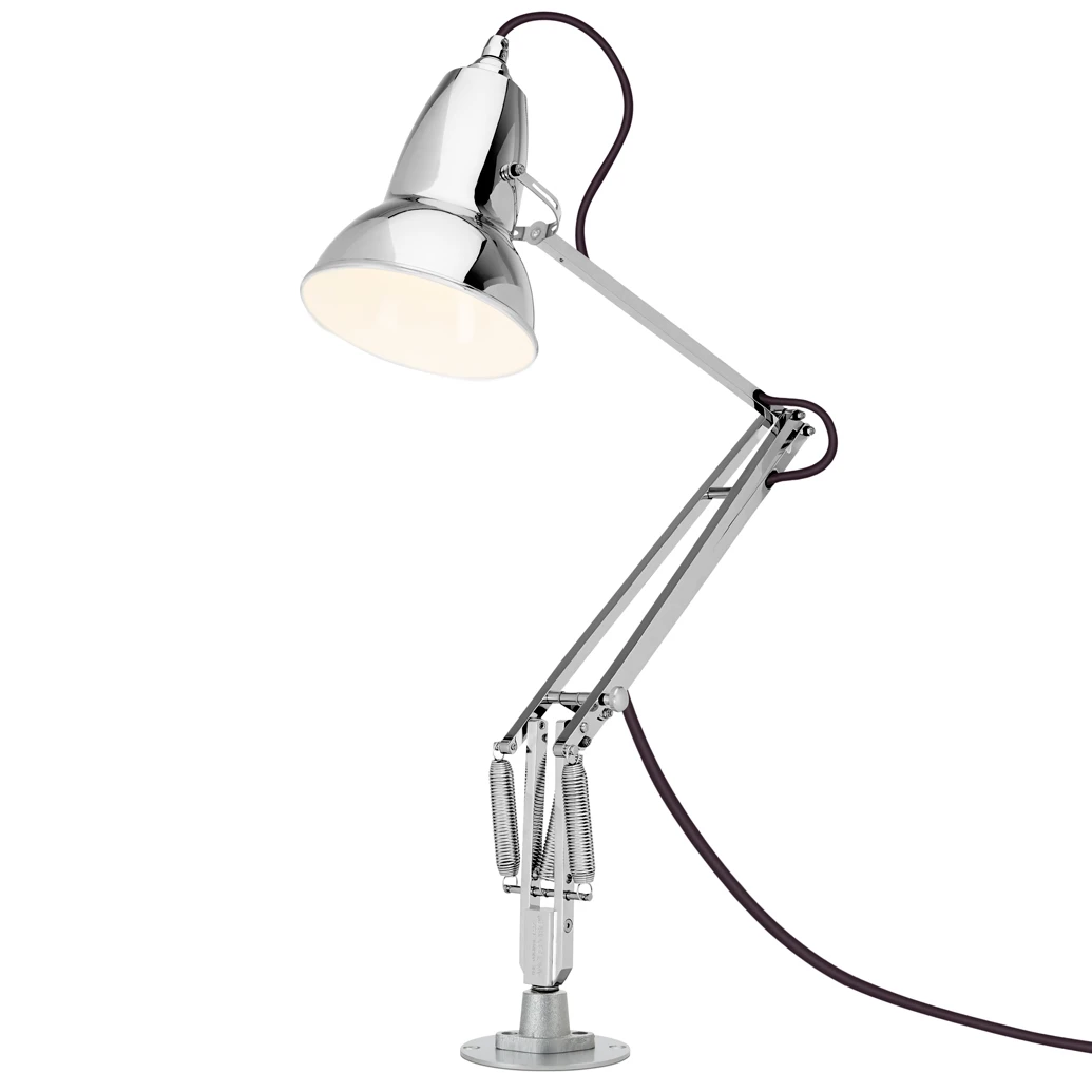 The Original 1227 Desk Lamp, designed by George Carwardine in 1934, remains a timeless classic and enjoys iconic design status. Original 1227 features an aluminum shade and arms, chrome-plated fittings, and a cast iron base with steel cover with Jet Black, Bright Chrome, Dove Grey, or Linen White finish. UL Listed.
