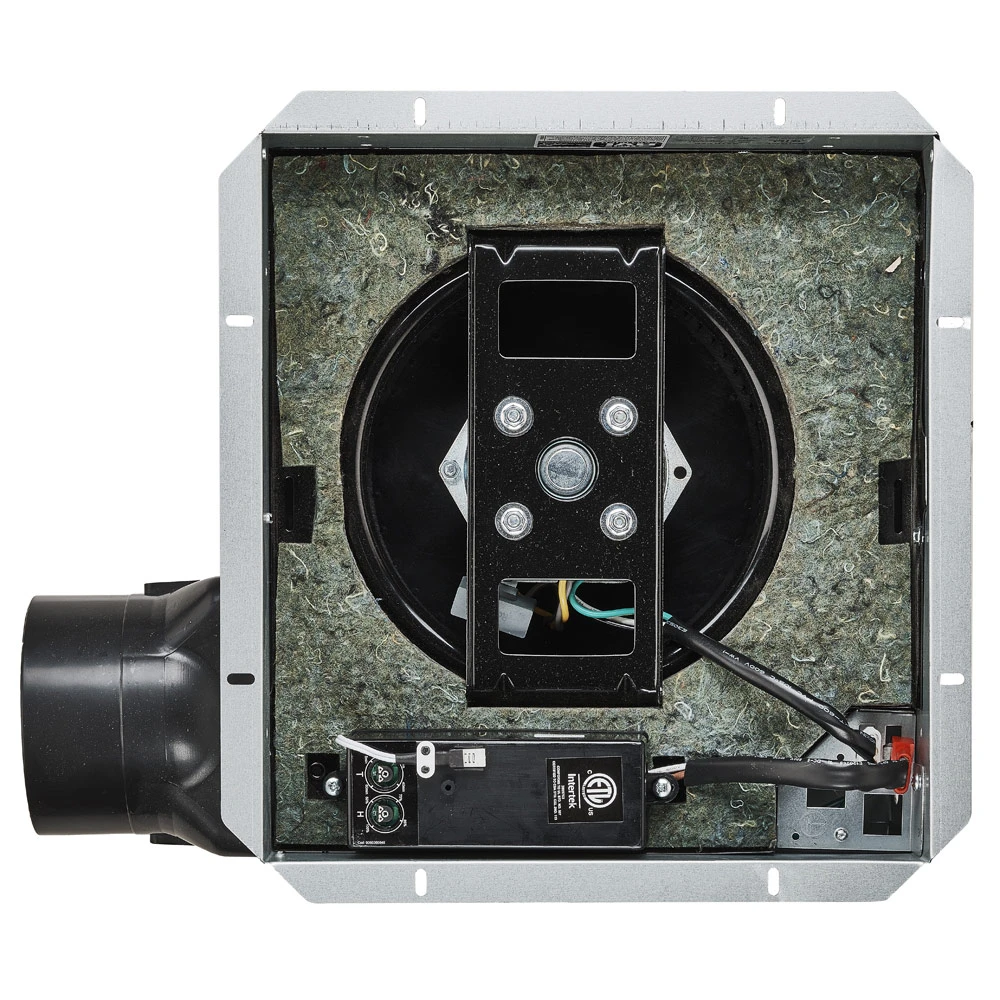 An integrated humidity sensor turns the fan on when humidity rises above a level set by the user (50-100%), a convenient feature for heavily used bathrooms.