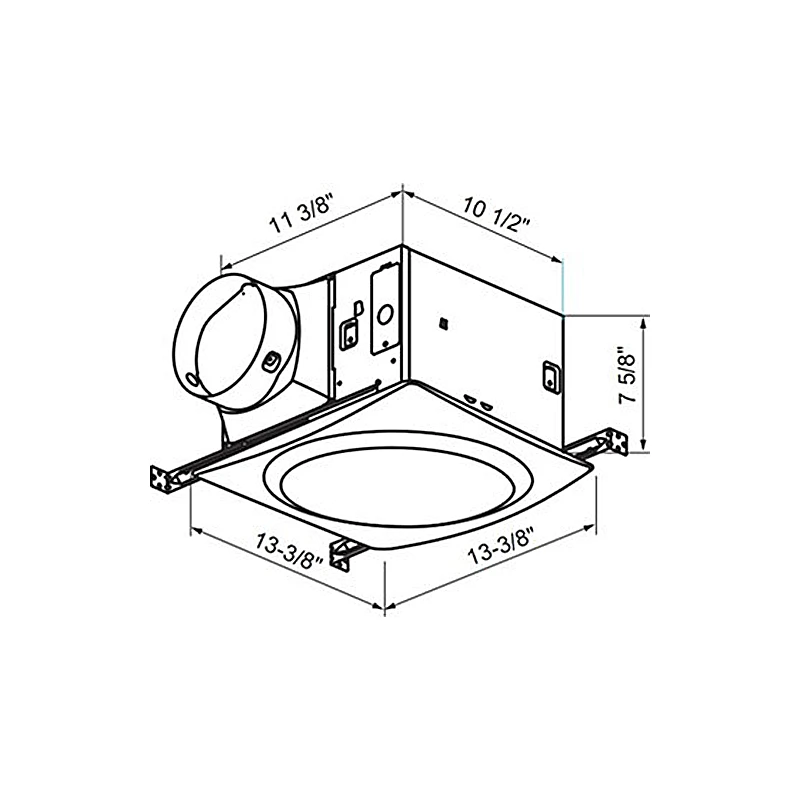 The fan has rust-proof steel motor housing, a built-in backdraft damper and thermal shutoff. It is designed for ceilings with at least 8 inches of clearance. Includes articulating expandable anti-vibration brackets and a connector for 6 inch ducts. ETL listed for use in a tub or shower enclosure when GFCI-protected.