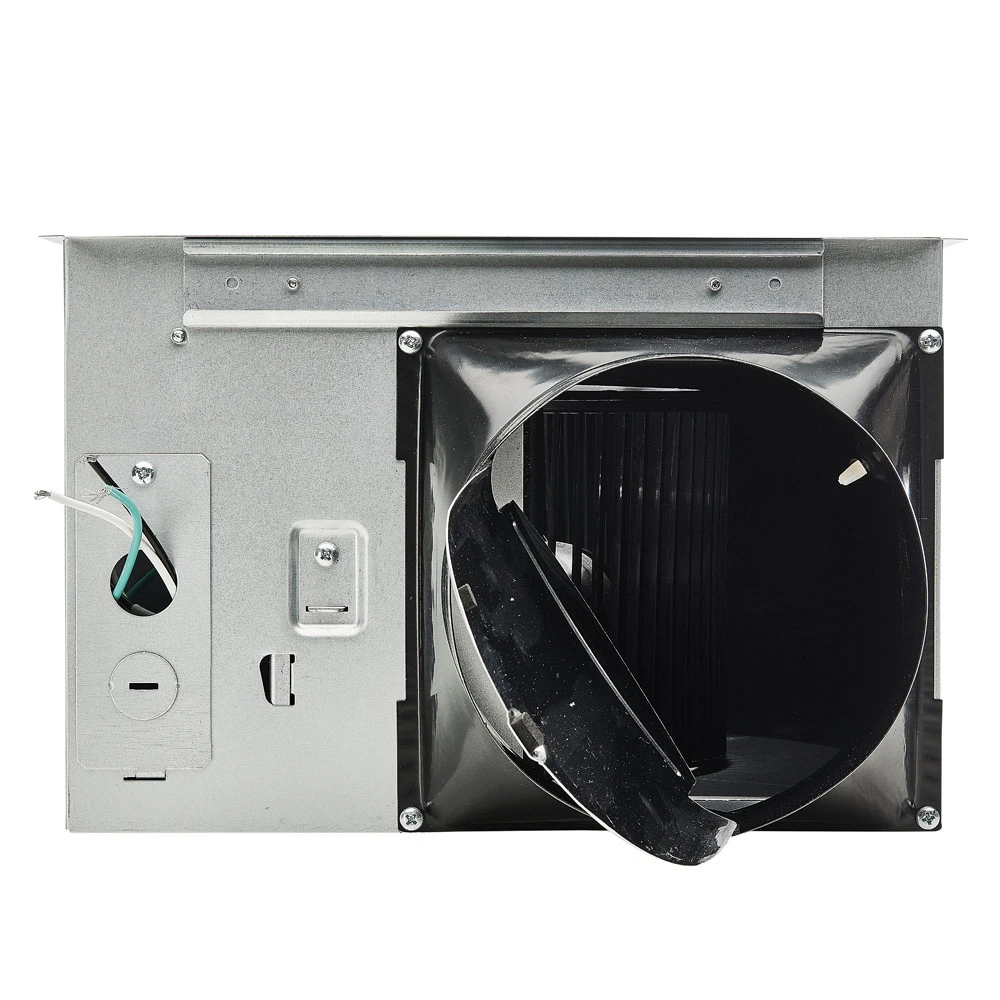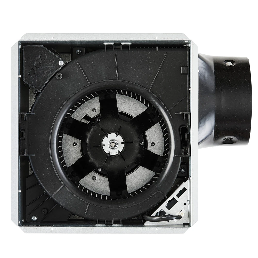 The energy-efficient brushless DC motor delivers an airflow of 200 CFM, well-suited for unfogging mirrors in larger bathrooms. An integrated humidity sensor can turn the fan on when humidity rises above a level set by the user (30-80%).