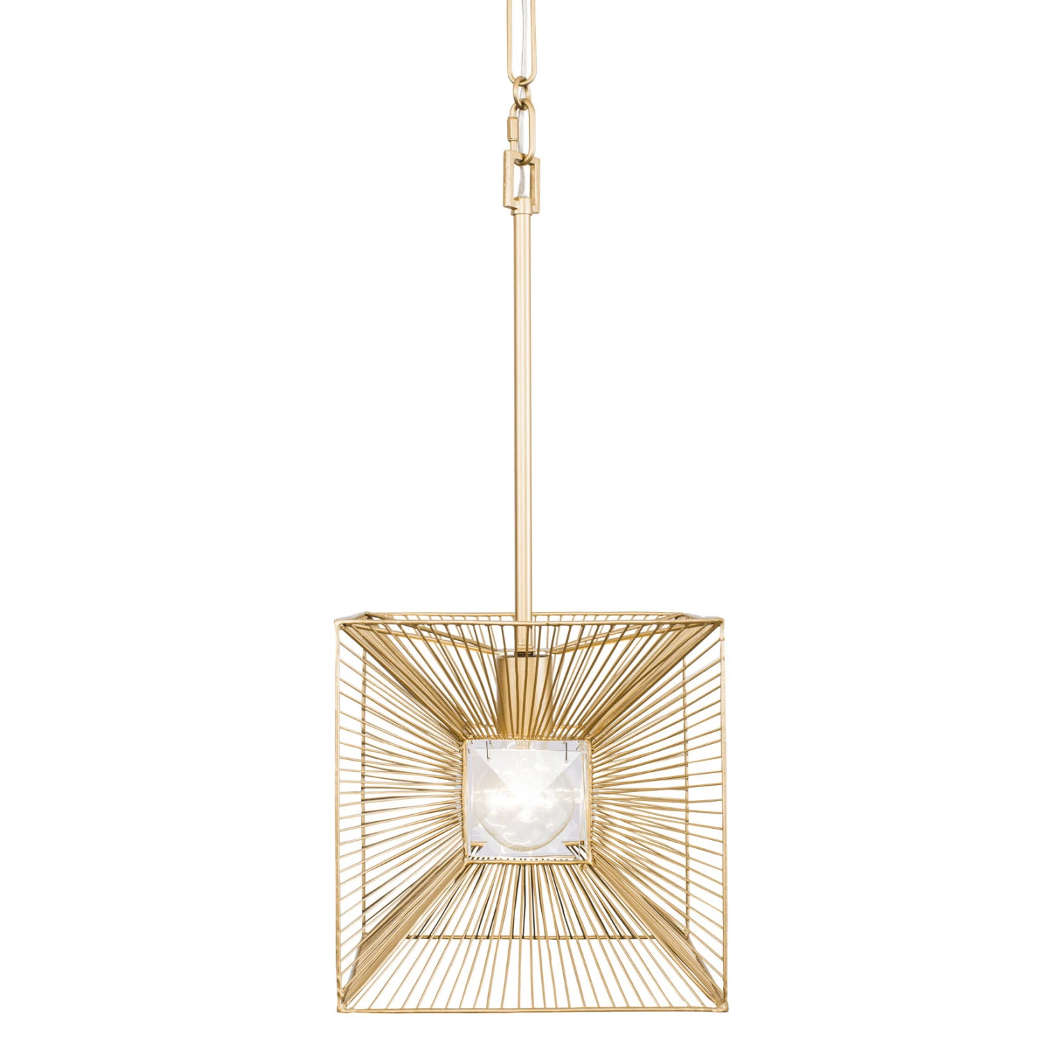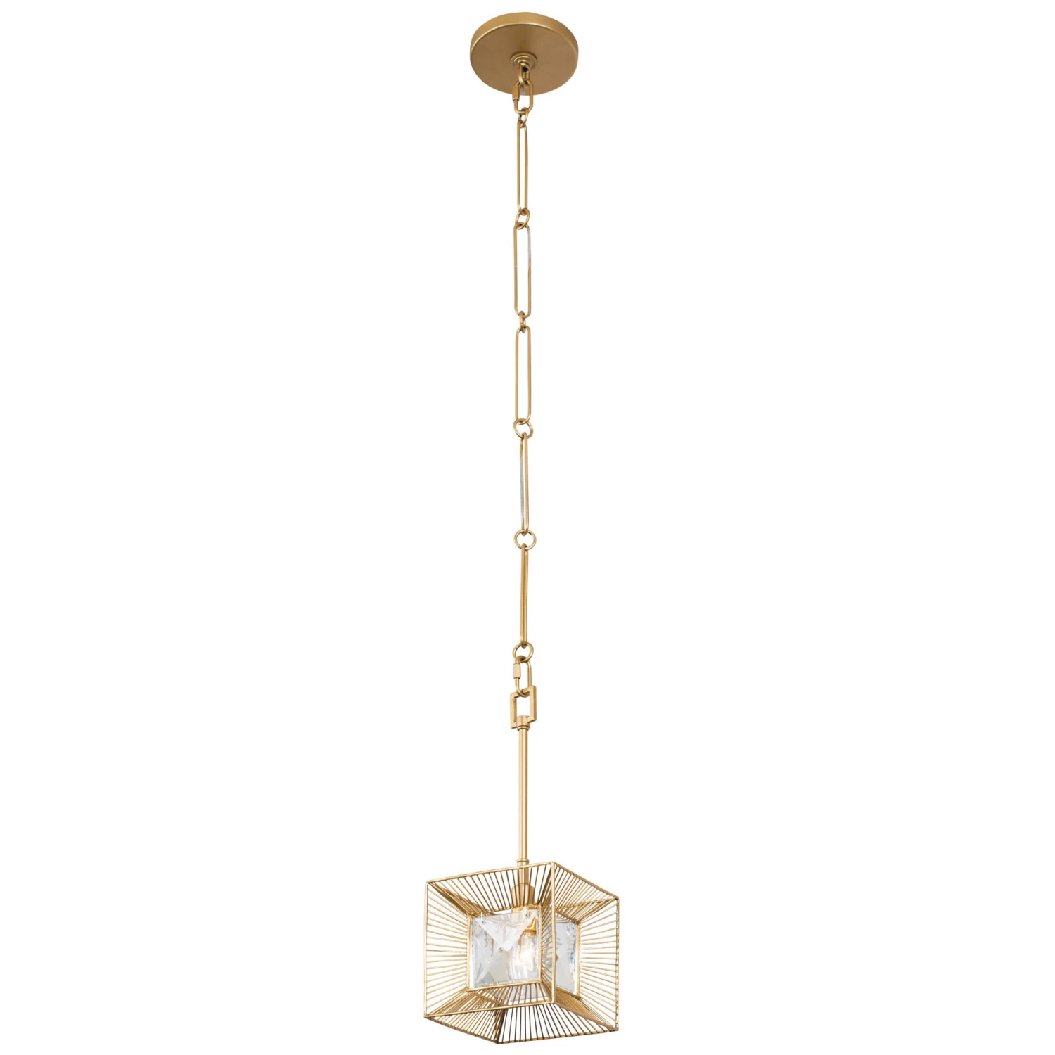 The Arcade Pendant’s cubic form is inspired by the geometric shape of classic 1970s arcade game cabinets. The diagonal lines of the handcrafted, recycled steel frame expand outward from the light sources, which are housed behind faceted crystal panels that produce a delightful sparkle.