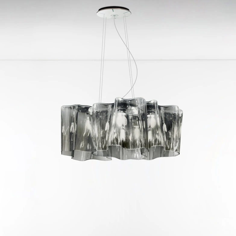 The Logico Mini Triple Linear Suspension features hand-blown organically shaped satin glass that seems to float in your space. Available in Grey Smoke or Milky White diffusers with a frame in die-cast aluminum, pale grey finish. Supporting cables in stainless steel. Made in Italy.