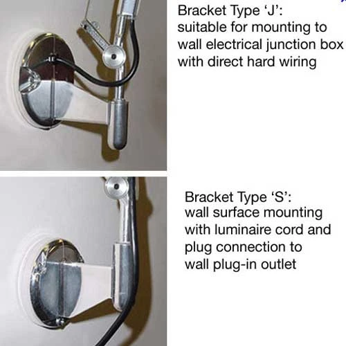 Tolomeo Mini Wall Light with S Bracket (cord and plug) features a fully articulated arm, body structure and diffuser in extruded natural anodized Aluminum, Black or White. Joints and tension control knobs in polished die-cast aluminum and tension cables in stainless steel. Type S suitable for wall surface mounting with cord and plug. Diffuser is tiltable and is 360 degree rotatable on lampholder. On/off switch. Requires one 100 watt, 120 volt A19 type medium base incandescent lamp, but is not included. UL listed. 5 7/8 inch diameter shade. 26 3/8 inch height x 28 depth x 43 11/16 inch fully extended arm.