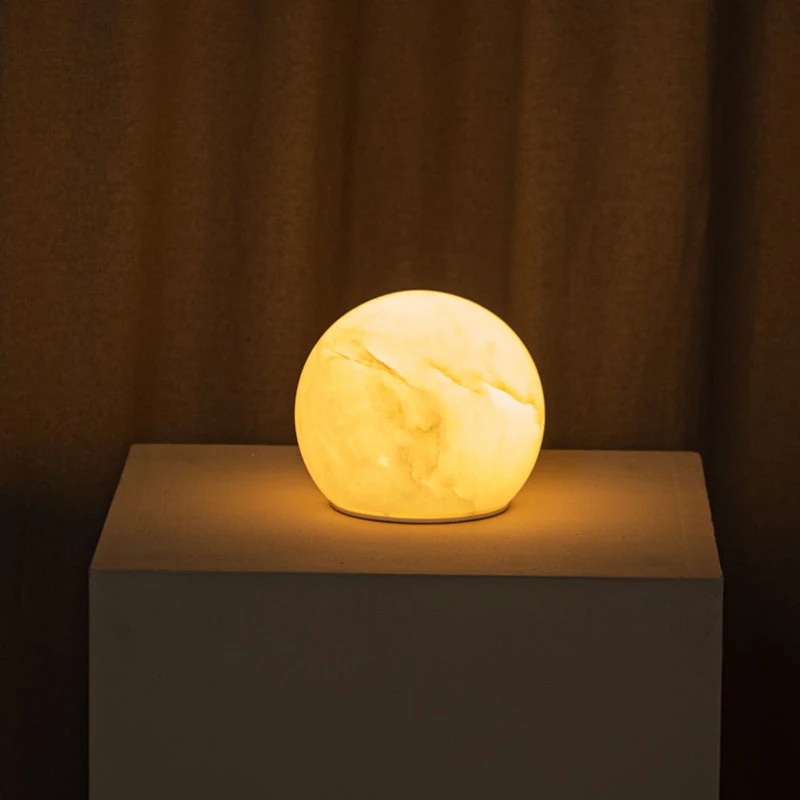 The Auguristo Portable Table Lamp is a rechargeable, portable table lamp with a minimalist expression perfect for creating ambiance in any space. The alabaster shade diffuses light from the integrated LED to produce a soft, warm glow. Includes charging pad and remote for dimming control.