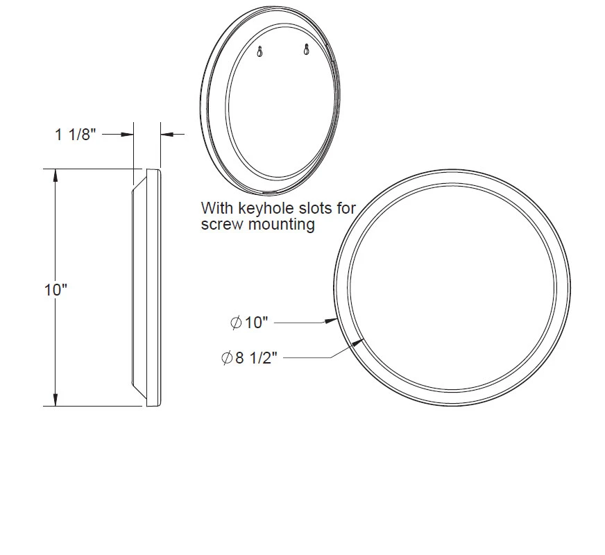 Baci Basic Round Shower Wall Mirror is constructed of a lexan epoxy body and optical quality 5x magnification glass mirror. Available with a Satin Nickel, Bronze, or Chrome finish. Sealed for placement directly on a shower wall. Suitable for wet locations.