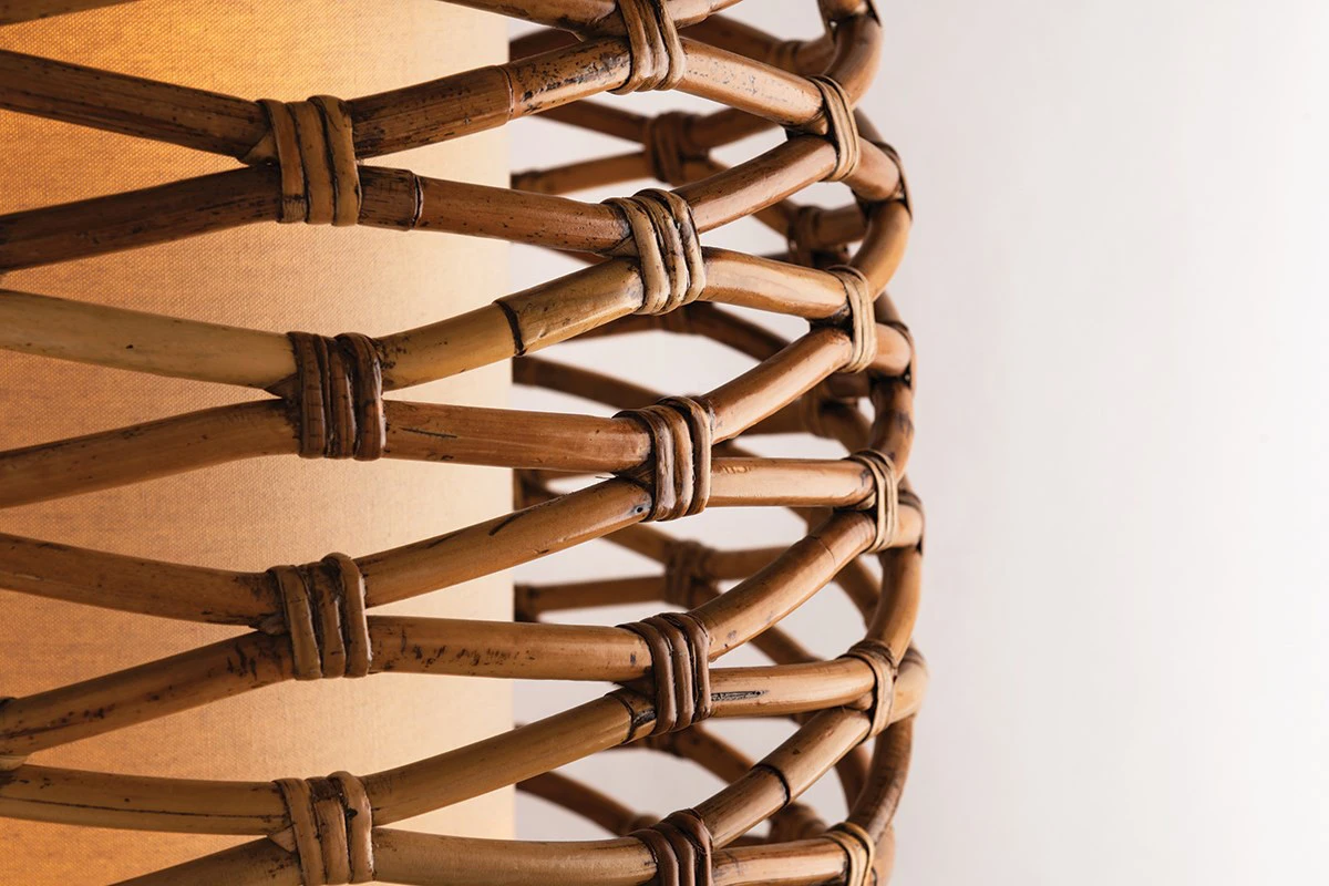 Balboa Semi Flush Ceiling Light is composed of three layers, an inner candelabra body, a middle Natural Fabric shade, and an outer woven form of sustainably harvested rattan. The wave pattern infuses any space with alluring natural textures and decorative motifs.