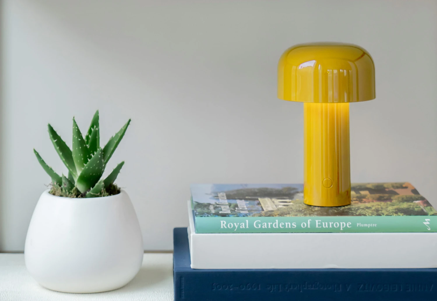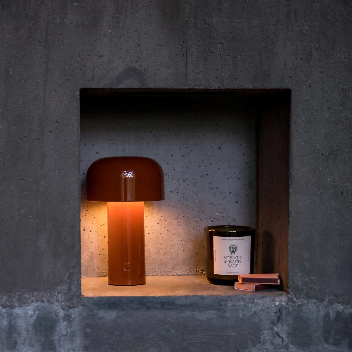 Resembling a hatted hotel porter, the Bellhop Portable Table Lamp is at your service. This cordless LED tabletop lamp functions as a modern-day candle by casting a soft atmospheric pool of light wherever you need it. A push button on the base provides on/off and 4-step dimmer function. The lamp can be charged using the included USB-C cable.