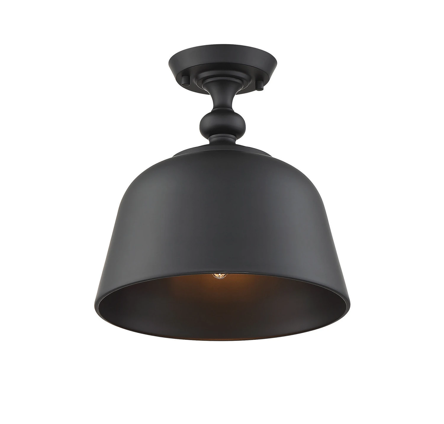 The Berg Semi Flush Ceiling Light is a perfect blend of industrial style and traditional allure. It showcases an over-sized metal shade for a bright and focused glow. The Berg is perfect for times when you would like a more directed beam of light, such as in a small entryway or a kitchen. Available in Warm Brass, Satin Nickel, Matte Black, English Bronze, or Polished Nickel. ETL listed.
