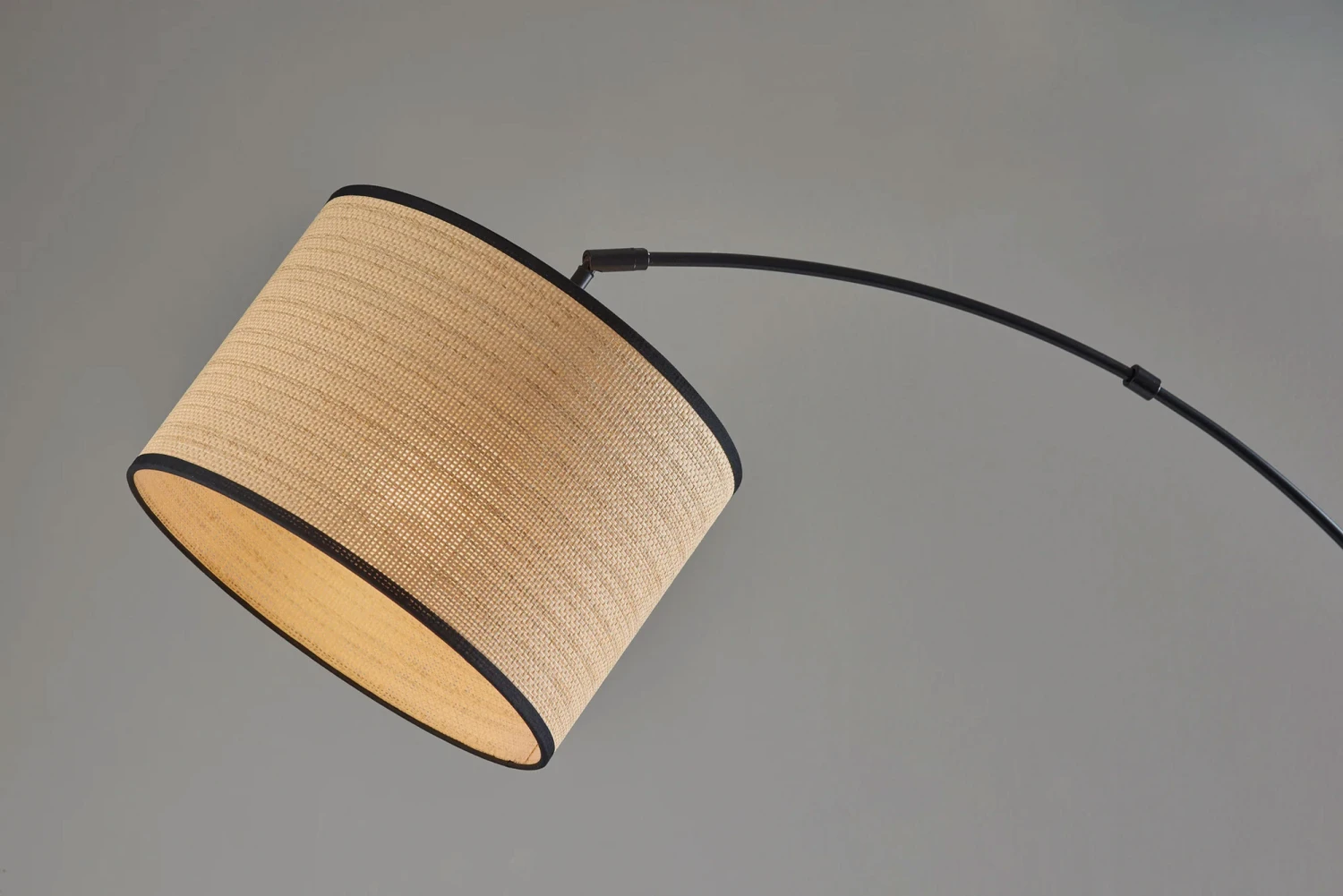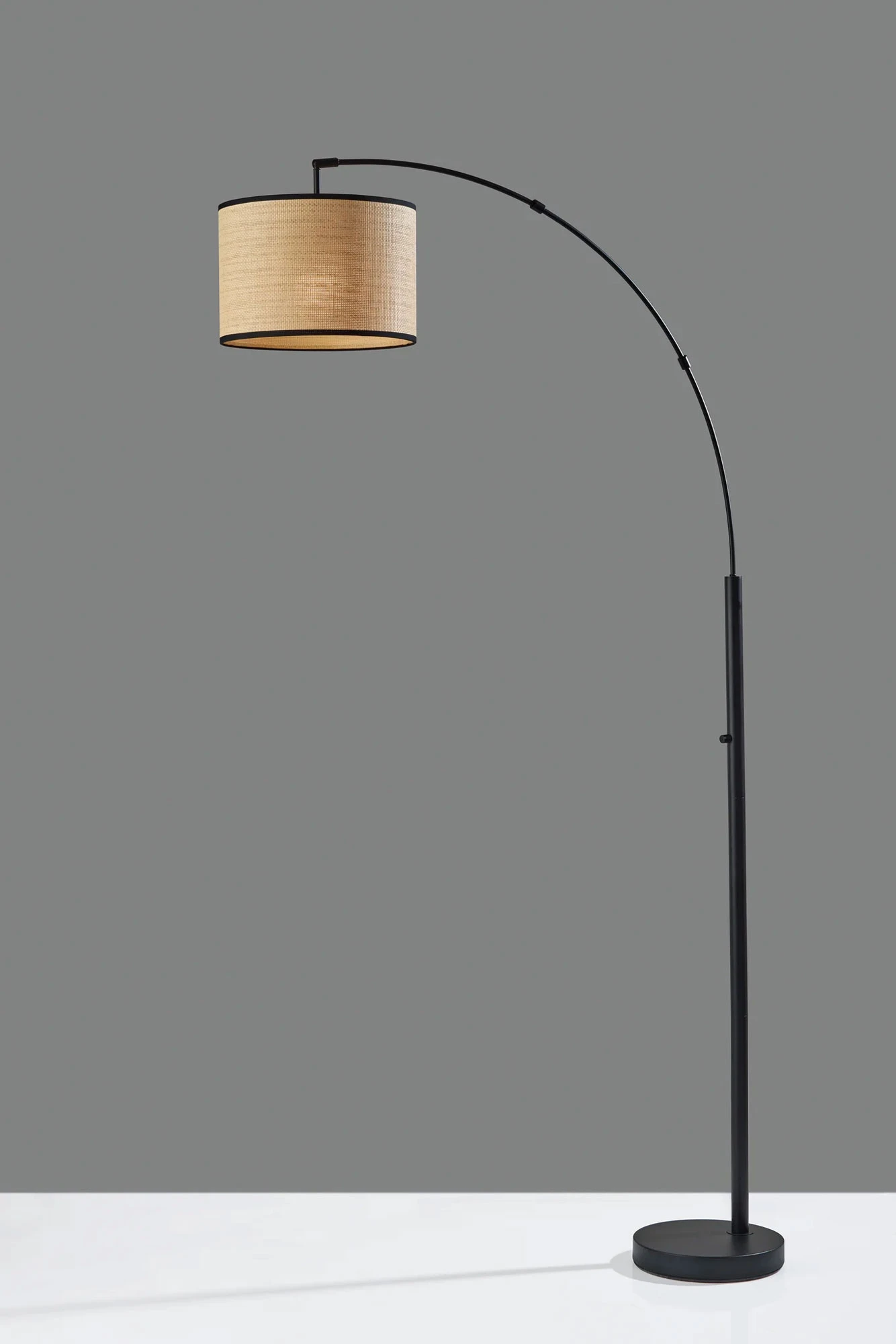 Playing with scale and space, the Bowery Arc Lamp gracefully extends over a sectional or sofa to stylishly illuminate your room. Crafted of metal with a striking finish, the lamp features a slim adjustable branching arm extending from a narrow central pole for a sleek, minimalist design with a natural woven drum shade. For highly versatile lighting options, the arm can be pivoted around the pole to best accommodate the space and can be adjusted and redirected to focus the light wherever it’s needed. On/off rotary switch on pole.