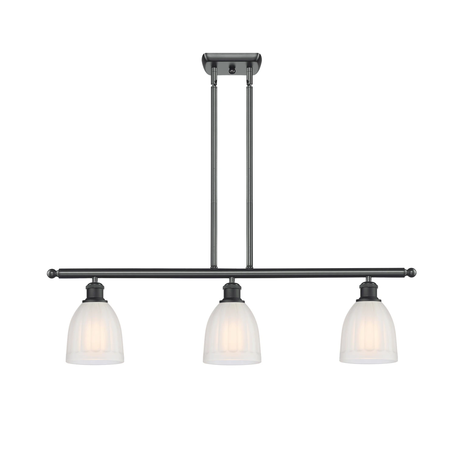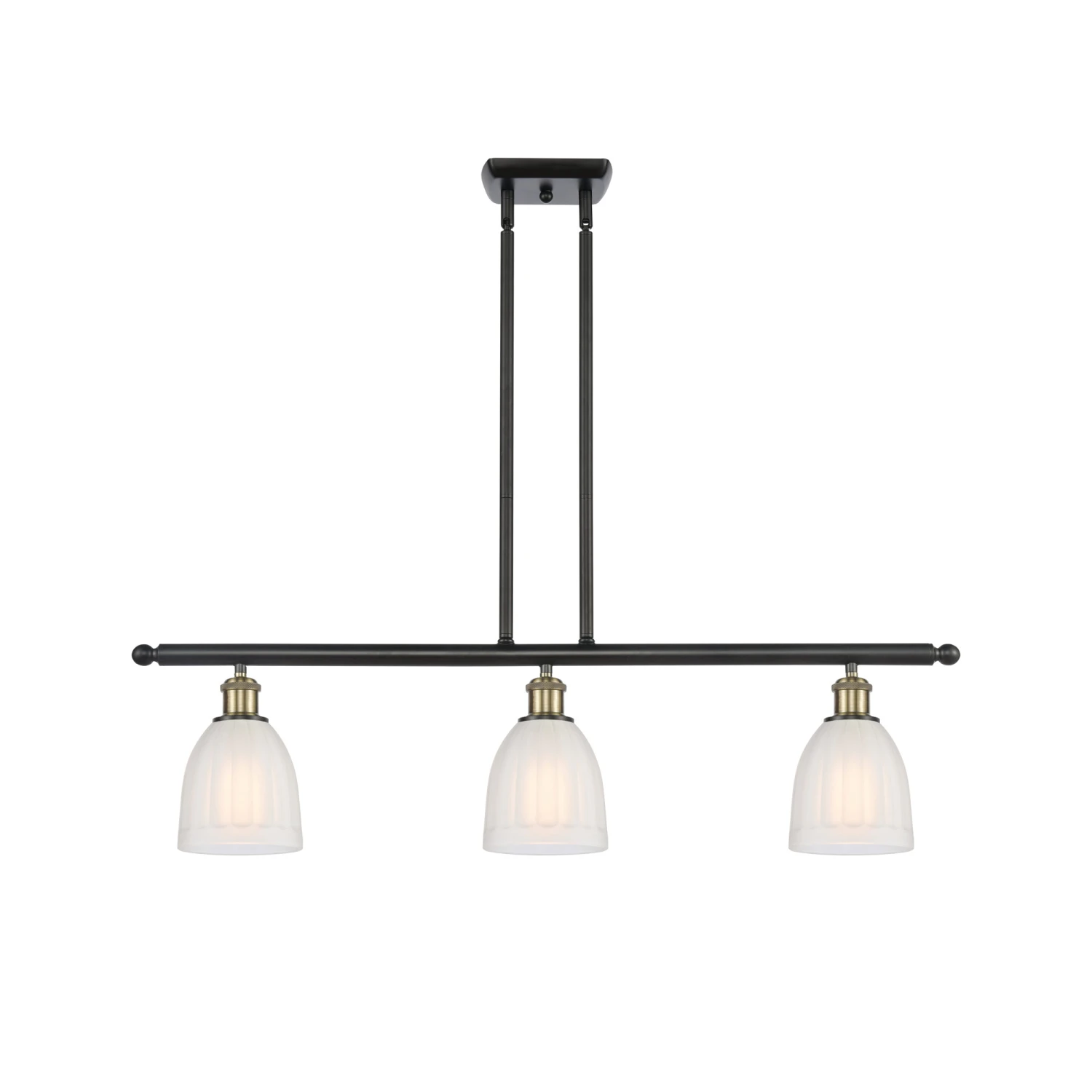 The Brookfield Linear Pendant has classic styling that will work well with most decors. An ideal selection for over a kitchen island, dining table, gaming area or workspace. Features bell shaped Clear or White Ribbed glass shades with your choice of Antique Copper, Black/Antique Brass, Brushed Brass, Matte Black, Oil Rubbed Bronze, Polished Chrome, Polished Nickel, Brushed Satin Nickel or White/Polished Chrome finish.