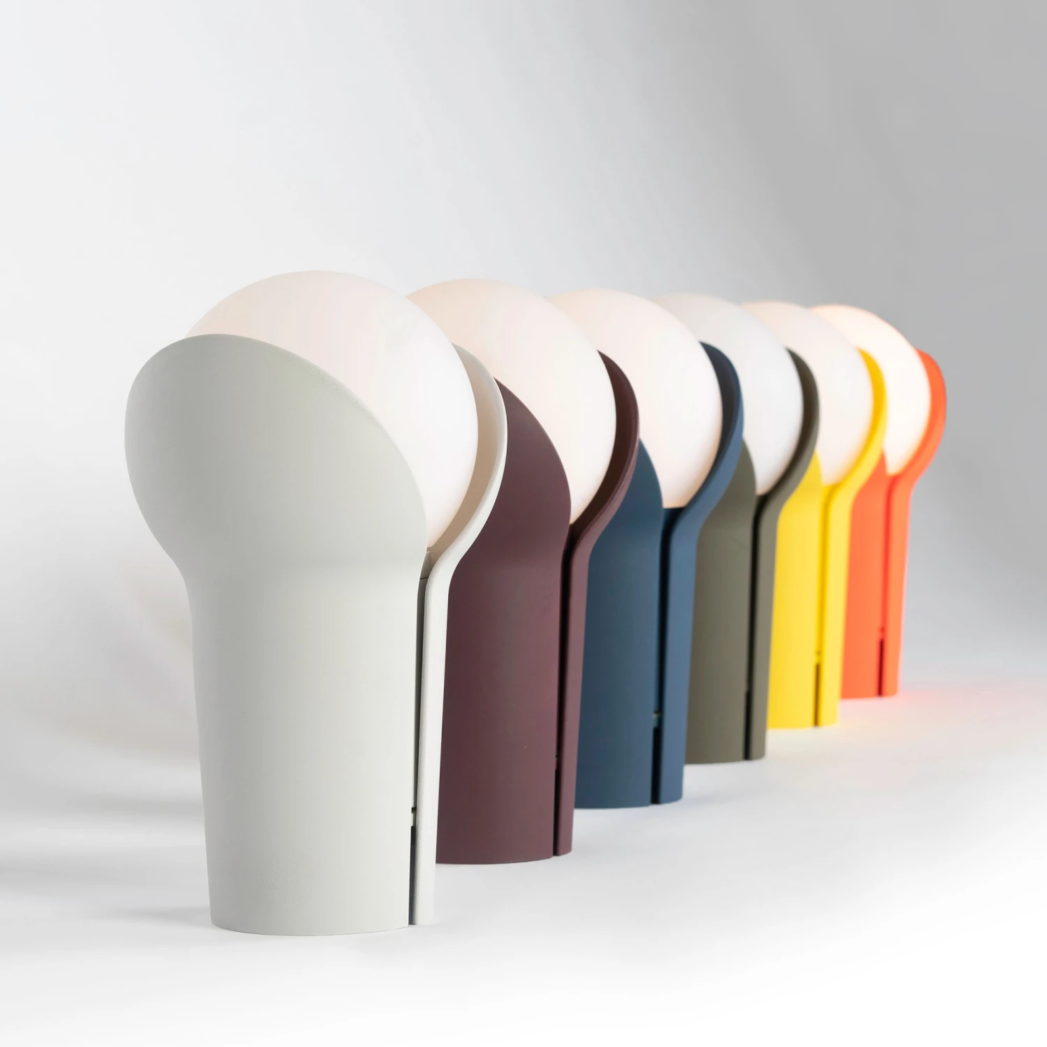 Bud is a fun, portable LED lamp that is perfect to take on the go thanks to its cordless design and petite scale. Drawing inspiration from nature, Bud is comprised of a globe bulb nestled between two petal-like forms that appear to cradle and protect the light source. Bud features a unique dimming function that allows for three different light settings, activated by pushing down on the top of Bud’s bulb, increasing light intensity from 25 to 50 to 100 percent with each sequential push. A micro USB cable is included to allow Bud to fully recharge within 5 hours. Maximum battery life is 20 hours at 25 percent intensity, 10 hours at 50 percent, or 5 hours at 100 percent. Available finished in Ash, Aubergine, Fluro, Lemon, Ocean, or Olive.