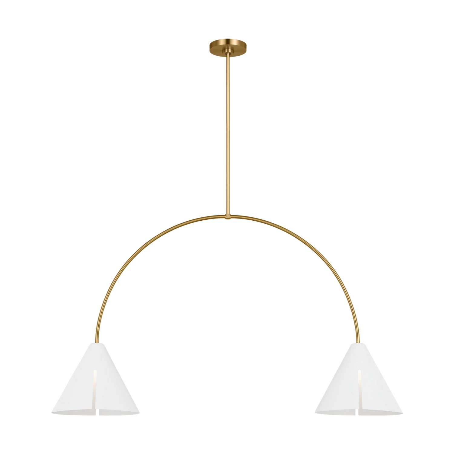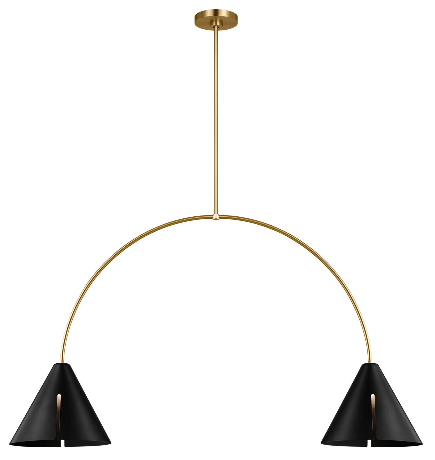The Cambre Linear Chandelier adds a clean decorative look to your interior space. The split, flattened cone shaped shades hang from a curved steel frame, casting warm shadows across your room. Canopy: 5 inch diameter.