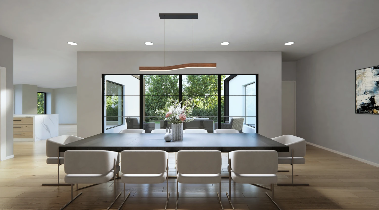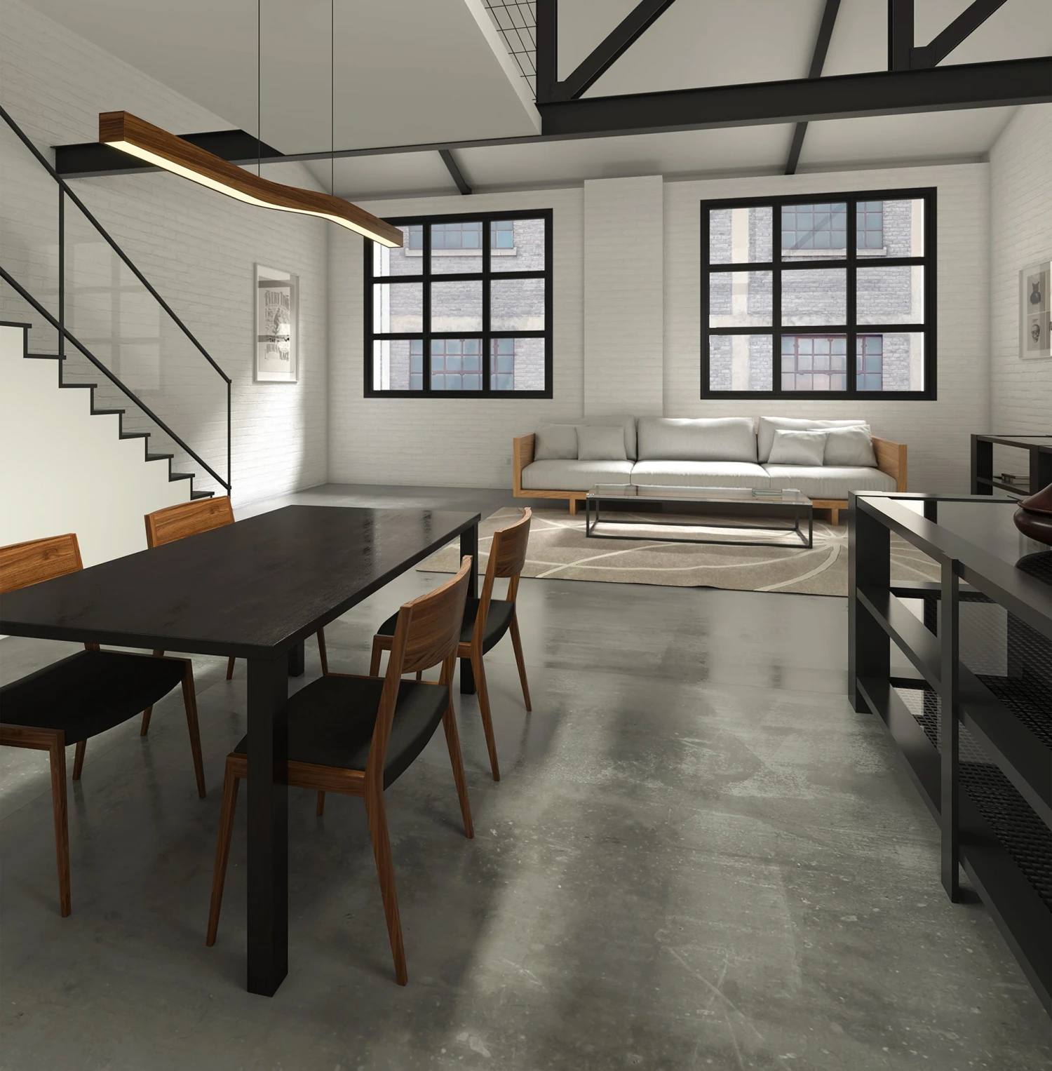 The light and delicate Camur Linear Pendant features a gentle curve which appears the same from the side as it does from the bottom. Available in Walnut or Dark Stained Walnut with a Brushed Aluminum linear canopy and frosted polymer diffuser. Dimmable via low-voltage electronic, TRIAC, or 0-10V dimmers. 2700K and 3500K color temperature options available.