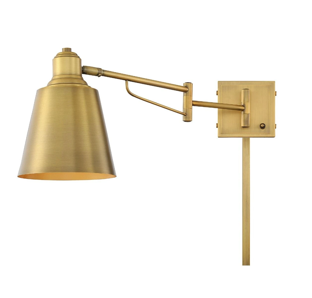 The Candiace Swing-arm Plug-in Wall Sconce brings a clean industrial look to your interior space. The decorative shade directs light directly where you need it. On/Off switch is located on the backplate.