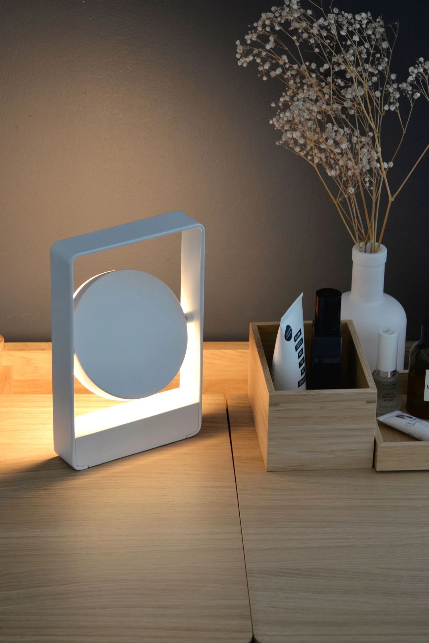 Inspired by the lighthouse in designer Patricia Perez’s hometown of Santander, Spain, the Mouro Portable Table Lamp toys with the arrangement of simple geometric forms in a versatile, modern light. The powder-coated steel frame holds a 360-degree rotating disc with an integrated LED light source to shine light precisely where it is needed. Mouro features a rechargeable battery and built-in dimmer, allowing the lamp to create the perfect ambiance in any space.