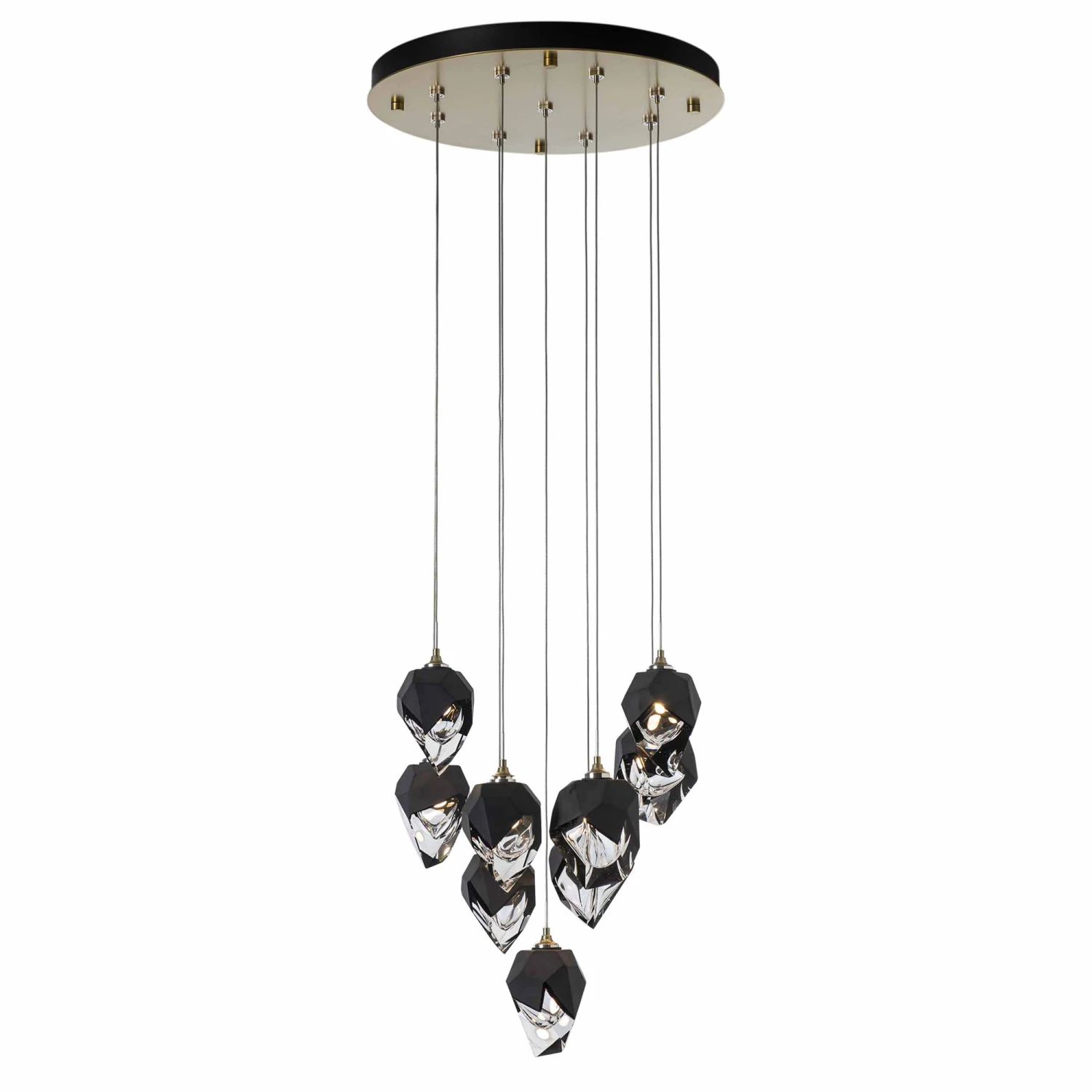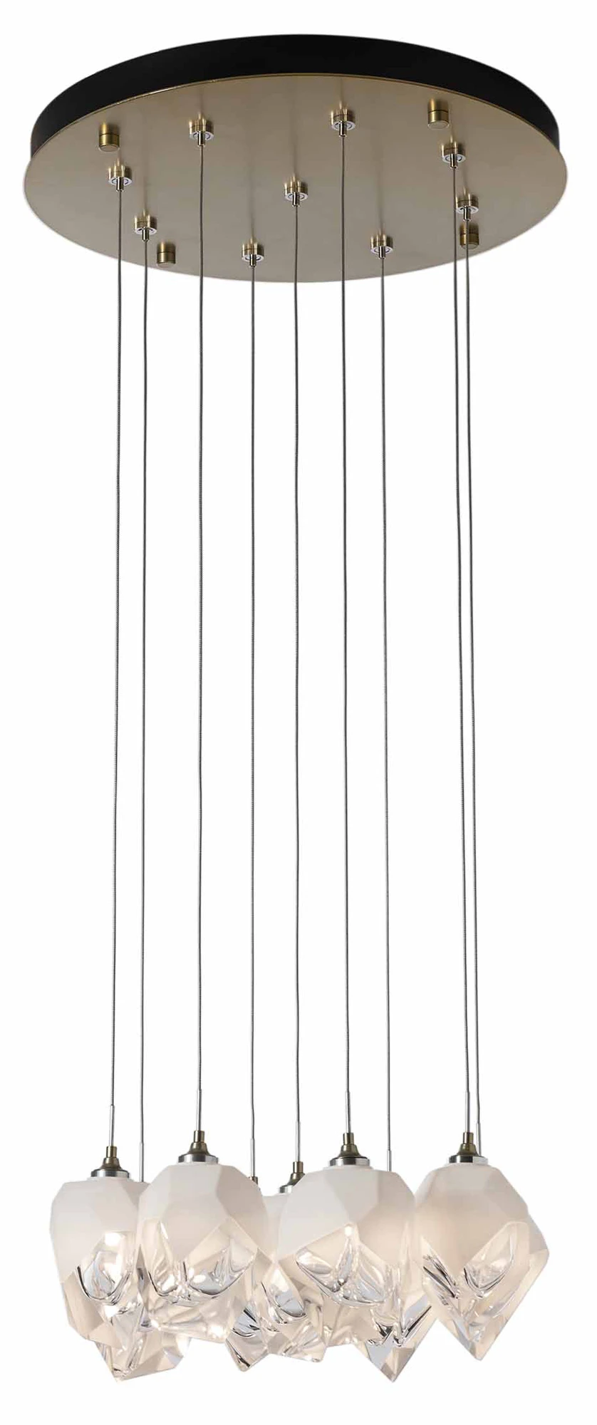 The Chrysalis Small Round Multi Light Pendant is like a jewel for your home. Small and large thick clear glass encased in a an outer layer of hand blown colored glass, casting warm shadows across your room.