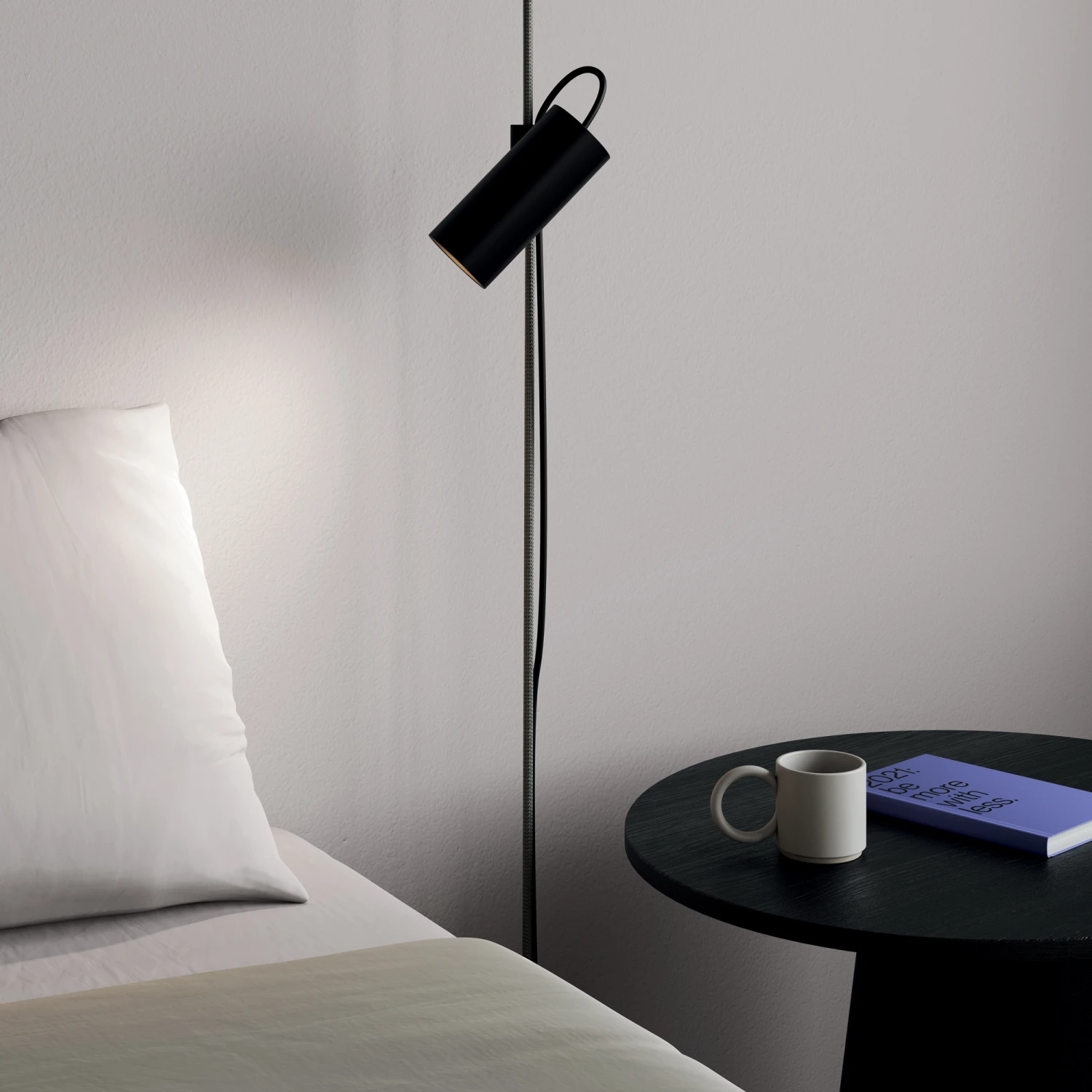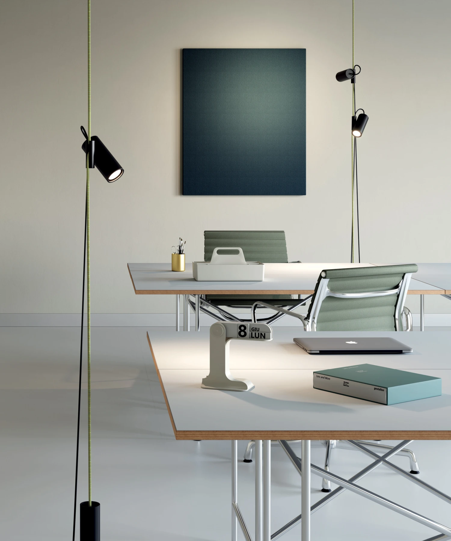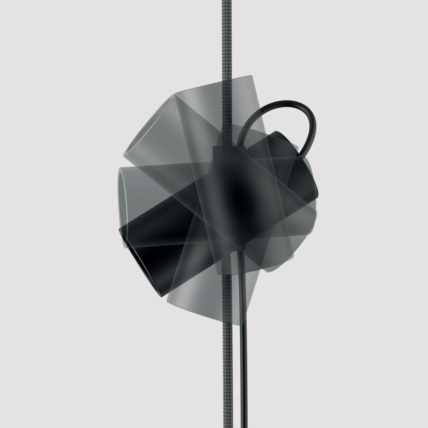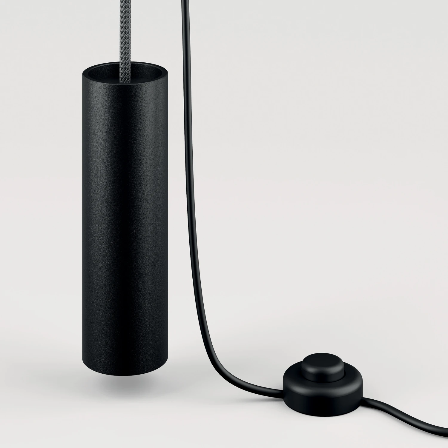 The Cima Floor to Ceiling Plug-in Pendant, designed by Marco Dessi, is inspired by jam cleats found on sailing boats. A simple adjustable head is placed on a variety of colored ropes. A hook for the ceiling and counterweight for the bottom, that matches the Black head, allow you to hang this at the height you desire as well as manage excess rope. On/Off foot switch is 39.4 inches from the plug.