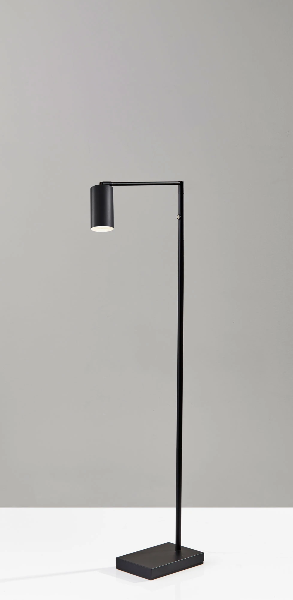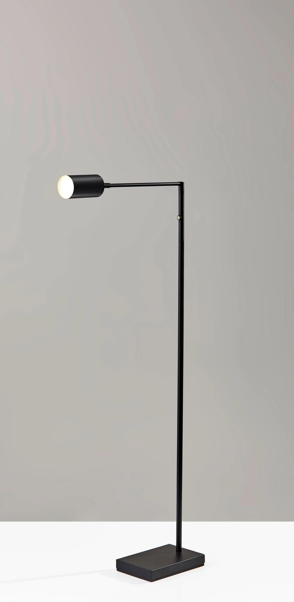 The Colby LED Floor Lamp is made up of thin, sharp lines and Matte Black metals. Adjustable at the arm and shade joints, this lamp is perfect for the desk or next to a sofa to illuminate all areas of the workspace or reading area. A 9 Watt integrated LED provides 3 different light settings to suit all needs, easily adjusted by a simple touch switch. Touch Dimmer: Low, Medium, High, Off. Includes 82 inch Black cord. ETL listed.
