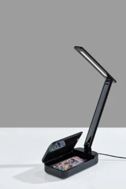The Collette LED Floor Lamp is a classic, modern task light that illuminates your work space in style. An adjustable arm and shade allow for light to be directed wherever it is needed. A 3-way touch switch offers a variety of light settings up to 650 lumens. Available in Brushed Steel or Black/Brass that adds a touch of mid-century modern influence to the design. ETL listed.