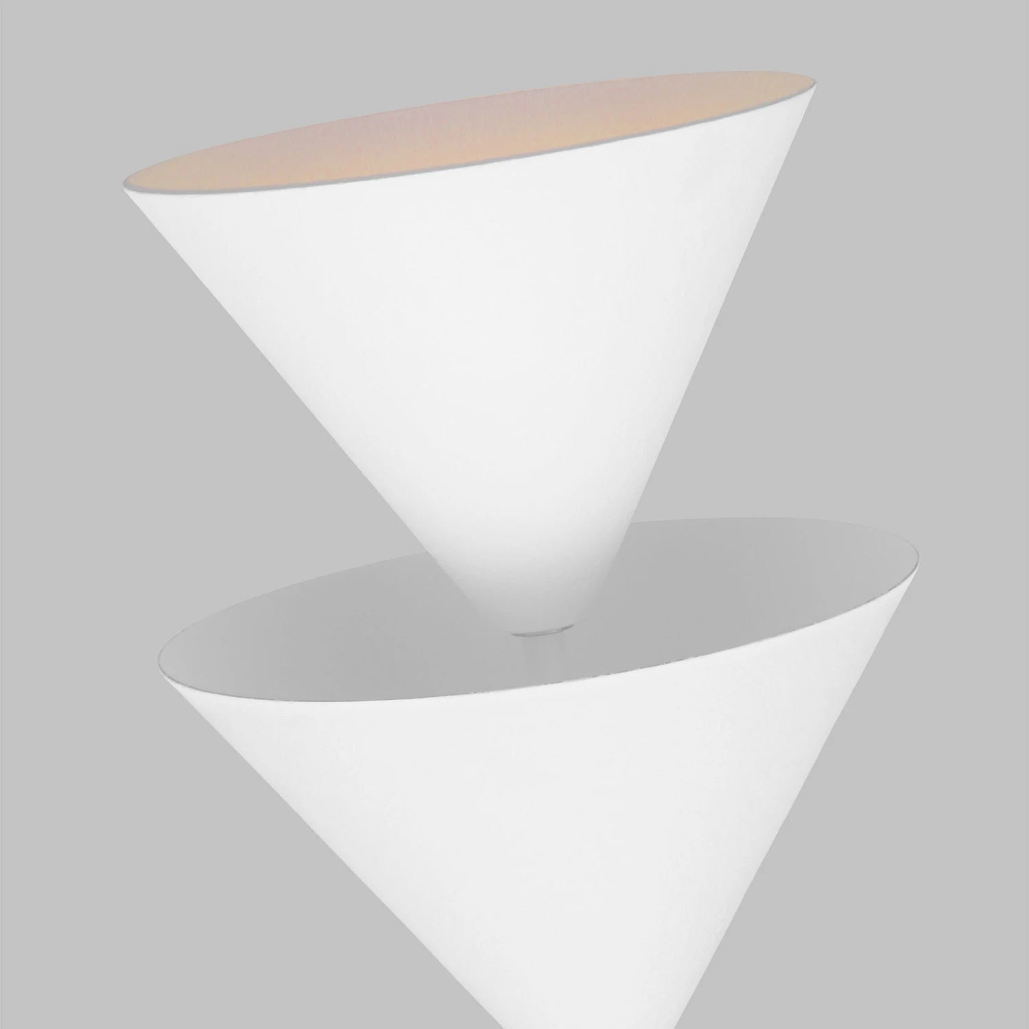 The Cornet Floor Lamp reflects 1920s-1940s European design from Art Deco to Italian midcentury with its tiered inverted cone shades. The white textured cast plaster finish offers fresh modern style, and the torchiere-style uplight delivers ambient lighting for your living room or home office. On/off switch on cord.