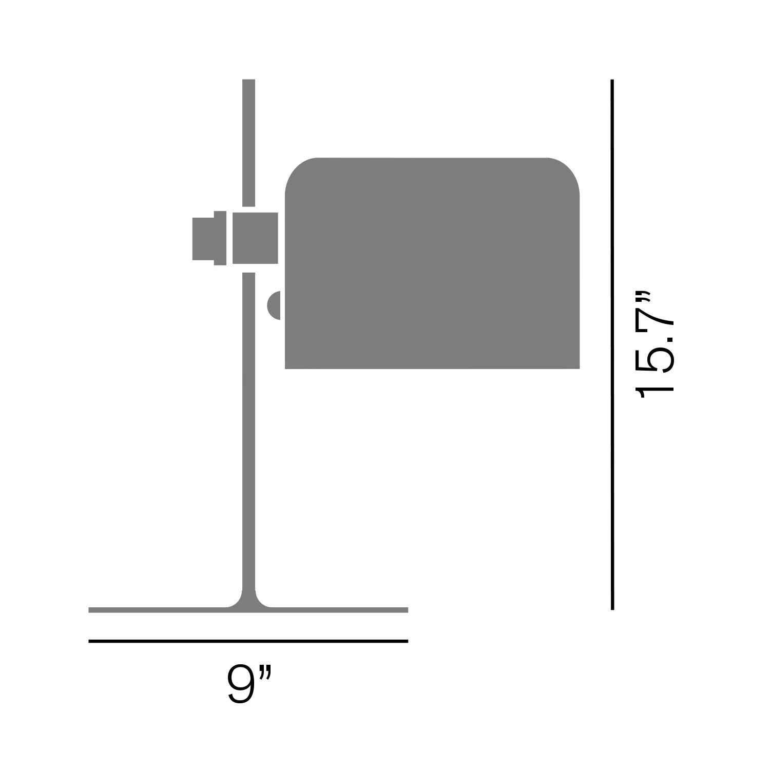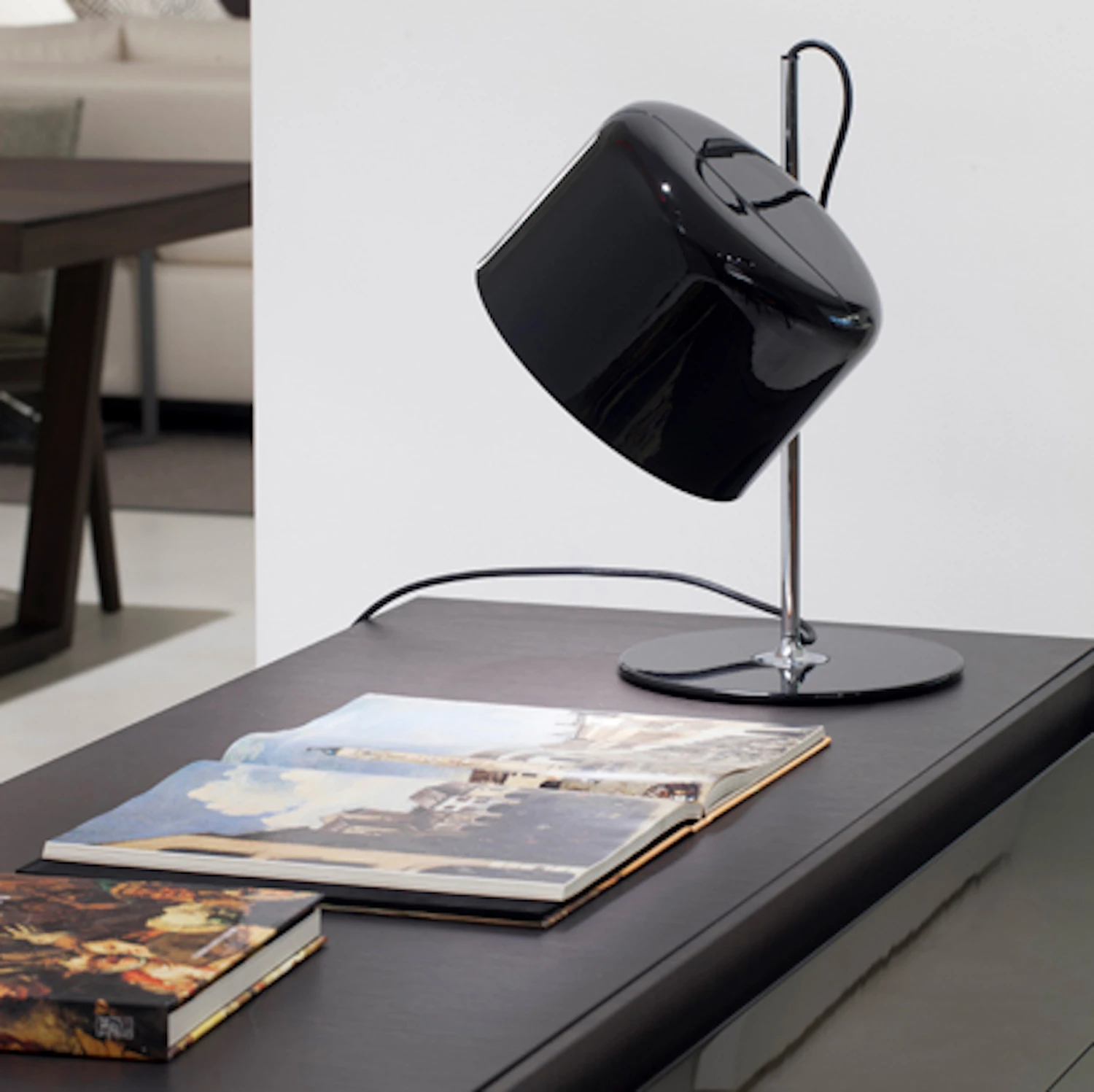 The Coupe Table Lamp features a special semi-cylindrical reflector with a Chrome-Plated stem. The adjustable shade allows for custom task lighting and it is available with a Black or White finish.