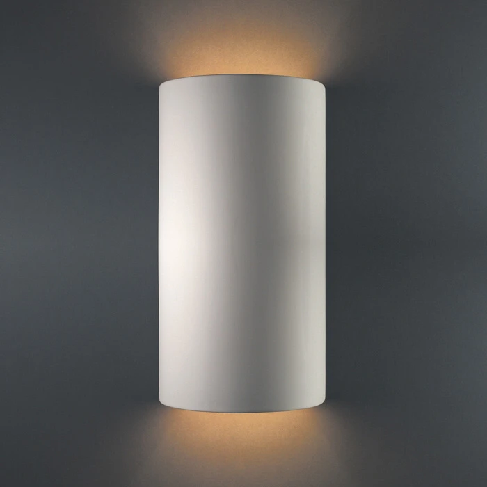 Add extra light to the exterior of your home with the Justice Design Ambiance Small Cylinder Open Top and Bottom Wall Sconce. This luxurious indoor wall sconce is made from hand-cast, hand-finished ceramic material and will not rust or corrode. This indoor wall light is damp location rated, and will effortlessly flood your space with crisp, ambient light. Use this energy-efficient, indoor wall light to brighten up your hallway, living room or bedroom space.