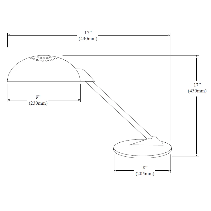 The Modern Desk Lamp features metal construction. On/Off switch location on lamp base.