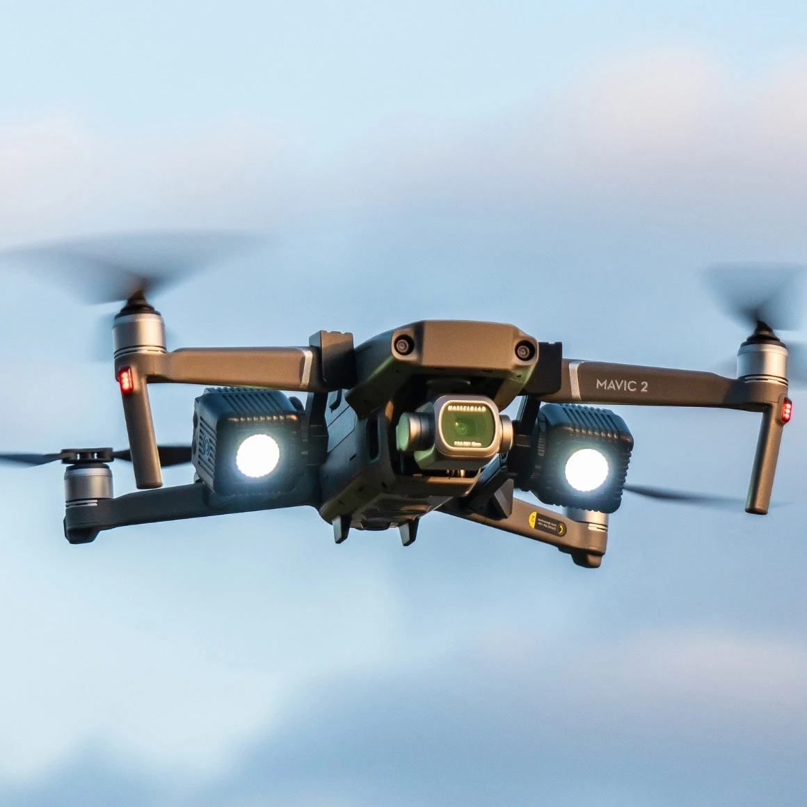 Light up the night. Capture epic nighttime drone footage and avoid collisions with this intuitive, sturdy lighting kit designed for use with DJI Mavic 2 Pro and 2 Zoom drones.