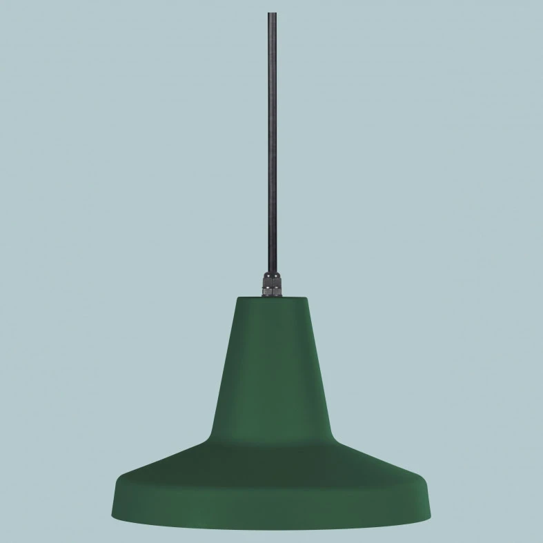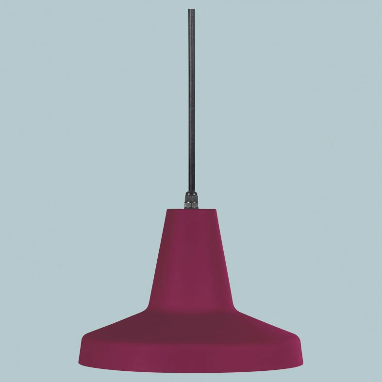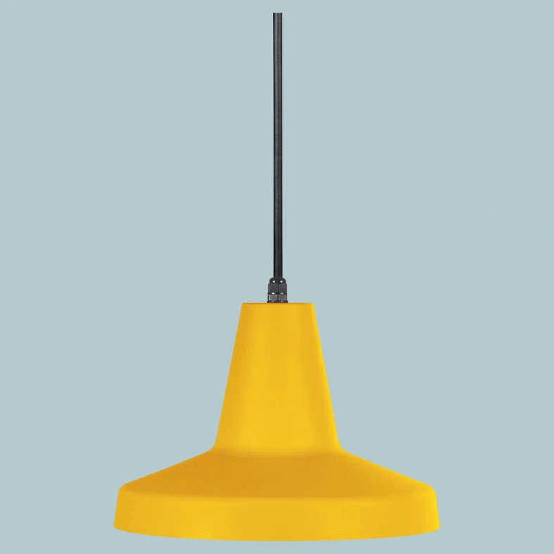 The Easy Light Famara Outdoor Pendant showcases vibrant colors with a minimalist design. It features a Metal Shade with a black plug-in cord. Made in Barcelona.