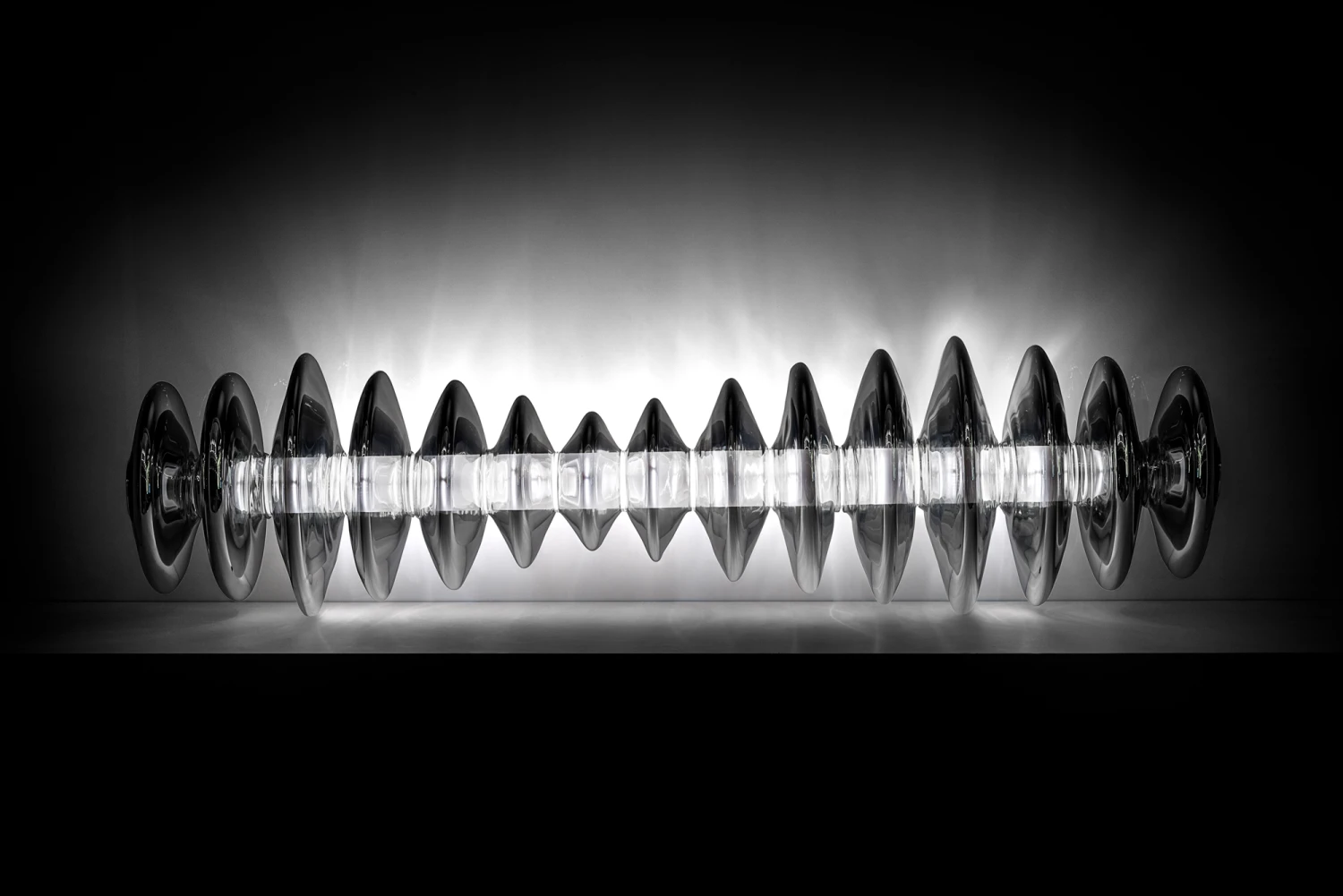 The Echoes Illuminated Sculpture is inspired by the origins of the universe. Echoes s an illuminated sculpture comprised of a series of glass discs fusing glass with sound to produce a stimulating soundscape, evocative of the gravitational waves coming from black holes. Integrated speakers combine with integrated LEDs to deliver a truly stunning work of functional art. Extremely limited, only 8 units have been produced. CE listed.