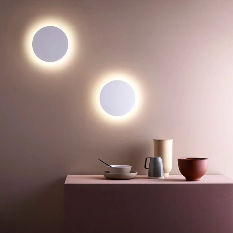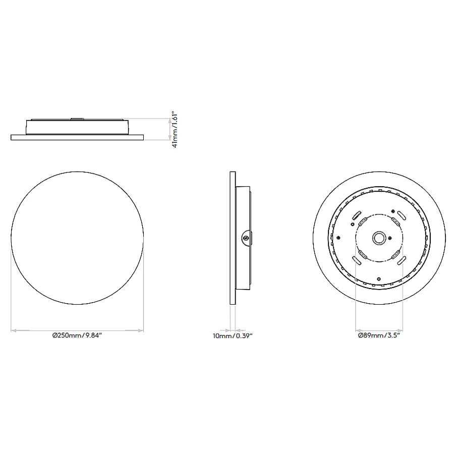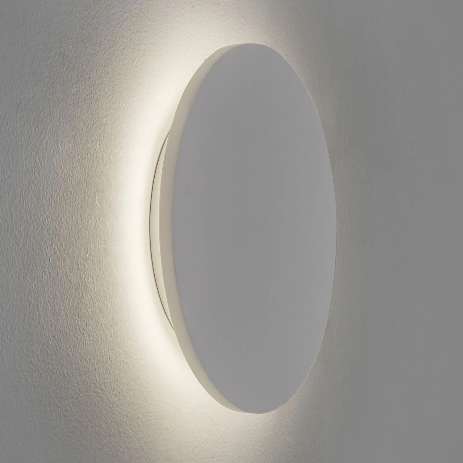 The Eclipse 250 Round Wall Sconce washes your wall in soft ambient lighting. The round plaster plate, in White, blends seamlessly into your space. Plaster material which can be field painted. Mounts to 4 inch octagon box. No driver required. Not dimmable.