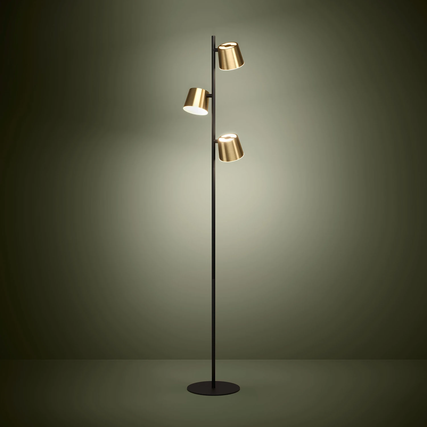 The Altamira Floor Lamp sports a sleek black finish and features adjustable lamp shades, letting you steer light in your preferred direction. Use this indoor floor lamp to add depth and warm light to your living room, home office or study spaces. On/off foot switch.