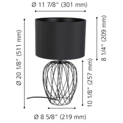 The Nimlet Table Lamp features a captivating geometric pieced design in a frame made of metal in a black finish. Topped with a black or white fabric drum shade, this lamp creates a stylish light source for any room in your home. On/off switch on cord.