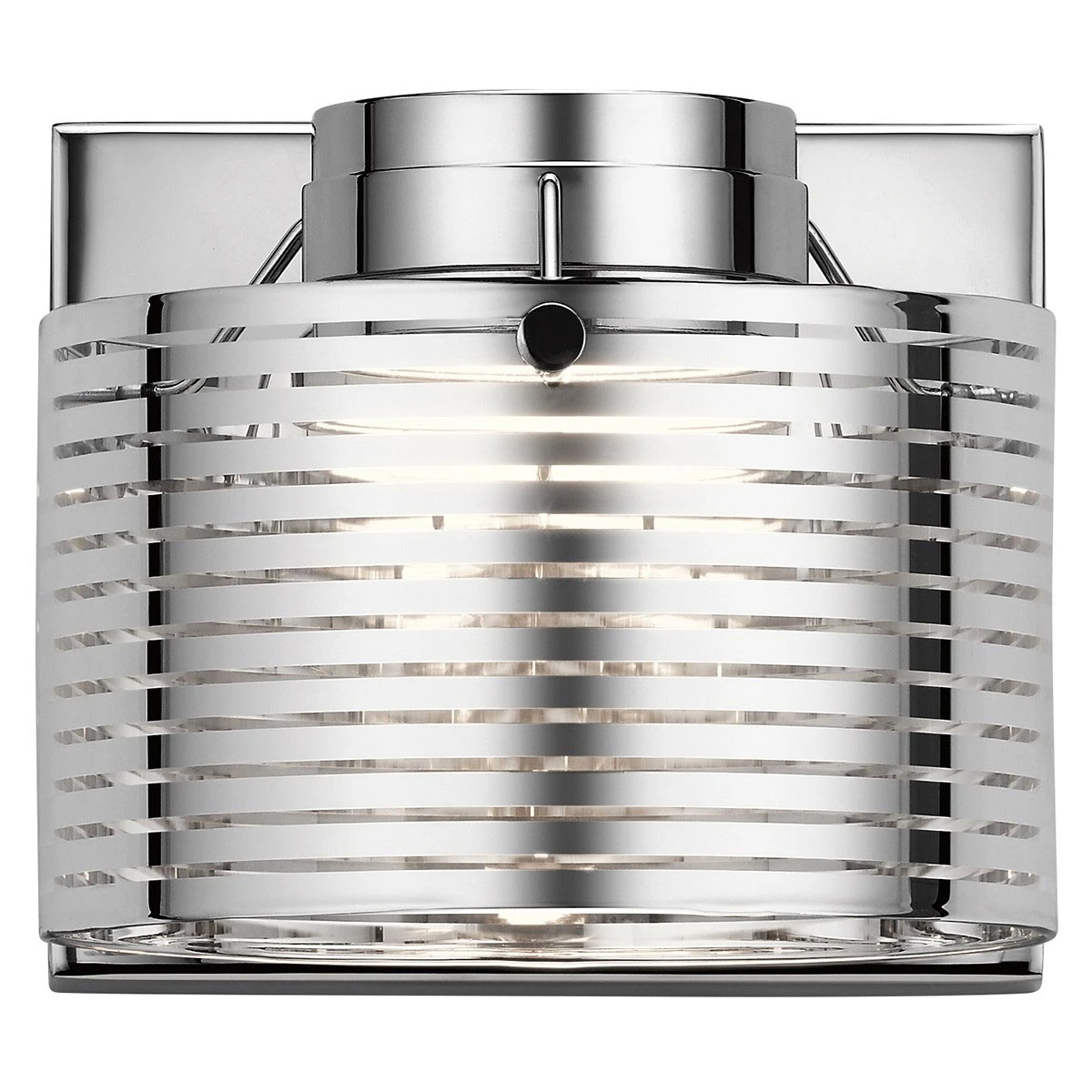 The Santora Wall Scone has an industrial chic, modern sleekness that will make it the perfect choice for a bathroom or other areas in your home. Featuring thin lines of metal with a Polished Chrome finish, allowing the soft touches of light to peek through, thus creating a cozy, relaxed atmosphere. Can be installed facing up or down. Compatible with most standard incandescent dimmers, LED dimmers, and electronic low voltage dimmers. For optimal performance, an electronic low voltage dimmer should be used. ETL listed. Suitable for damp locations.