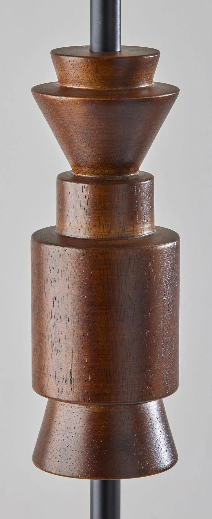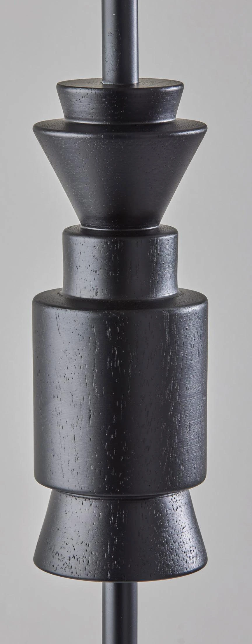 The Elton Floor Lamp features a fabric drum shade and sleek black stem complemented by a geometric wooden accent for a modern touch. A 3-way rotary switch allows the lamp to be switched between low, medium or high brightness when used with a 3-way bulb. Available in Walnut accent finish with Light Beige shade or Black accent finish with Light Grey shade.