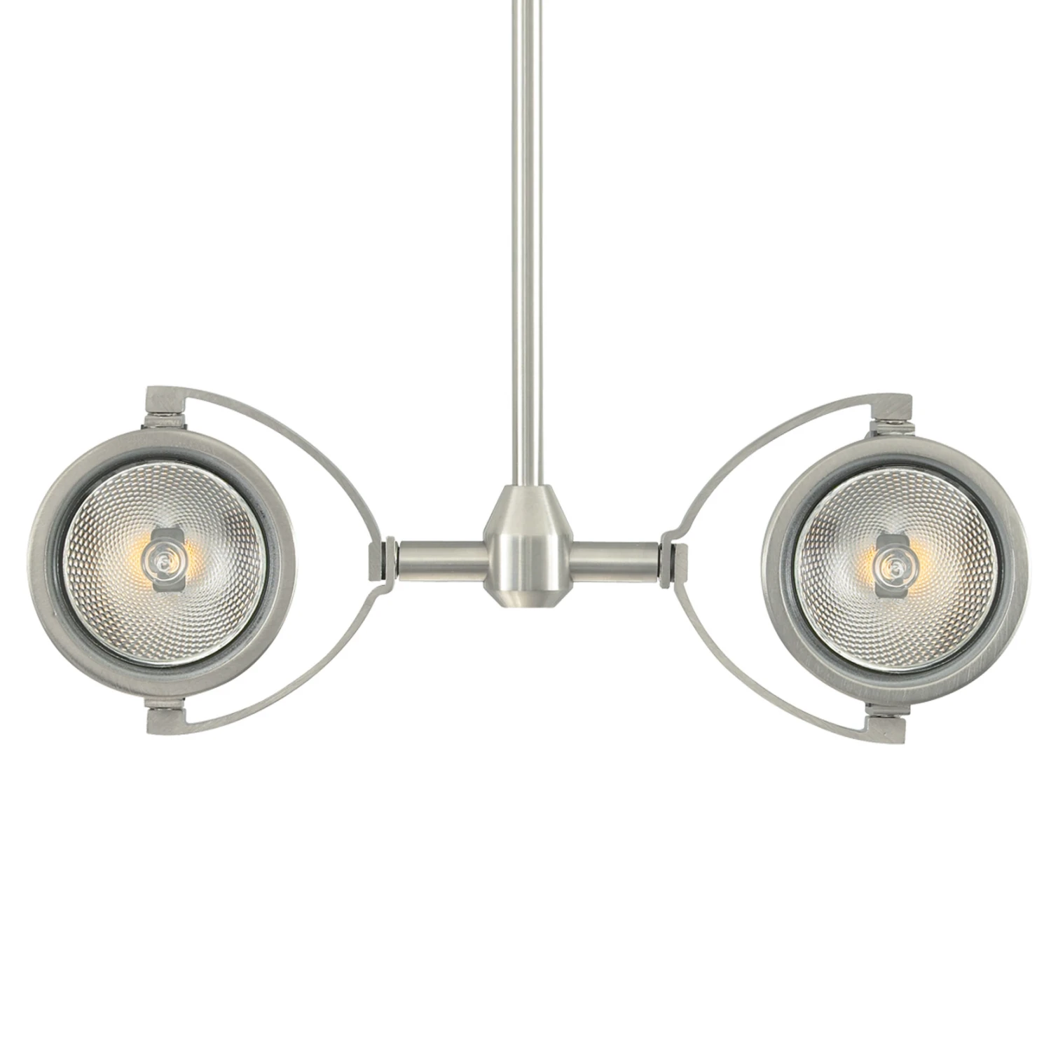 The Elton Freejack Adjustable Double Head tilts and rotates infinitely. Rotates a full 360 degree and pivots 360 degrees to direct light beam to the desired location. Compatible for use with 1-circuit Monorail track system, Wall Monorail or Freejack canopy. Available in three stem lengths. Two 12 volt, up to 20 watt GU5.3 MR16 lamps are required, but not included. Integral louver lens holders can hold a single glass lens (sold separately) or an eggcrate louver (two included). Includes Freejack connector. Freejack canopy required if used as a monopoint, sold separately. LED canopy compatible with both halogen and LED lamp options. Dimmer type dependent on system transformer (low voltage magnetic or electronic).
