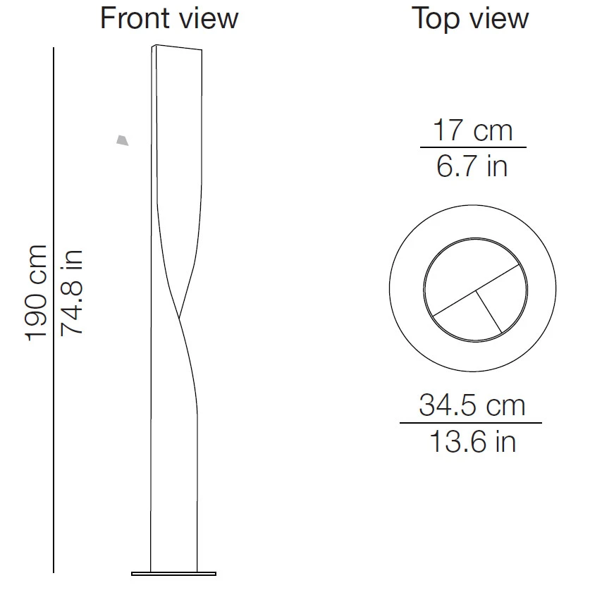 The Evita Floor Lamp offers a chic, modern look that features an unwinding cylindrical body to reveal a subtle illumination. Available finished in Dove Gray, Red, or White. On / Off foot switch. CE listed.