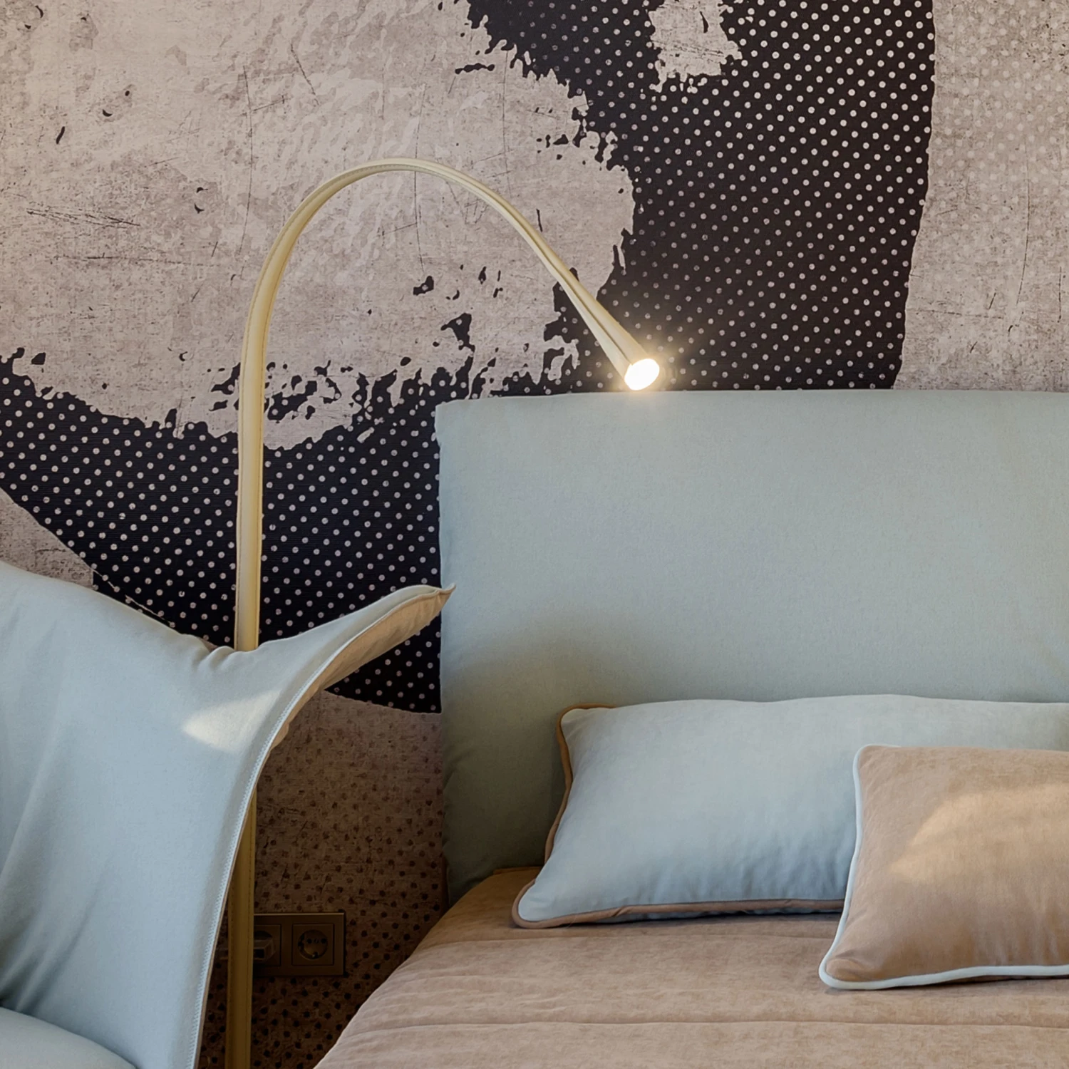 The Flexiled Floor Lamp will make a perfect addition to a living room or office with a flexible neck that can be aimed to provide light exactly where it is needed. The stem and neck are covered with a leather sheath with stitched details, adding a luxurious element to Flexiled’s minimalist design. The lamp houses an integrated LED light source with an included dimmer footswitch located on cord.