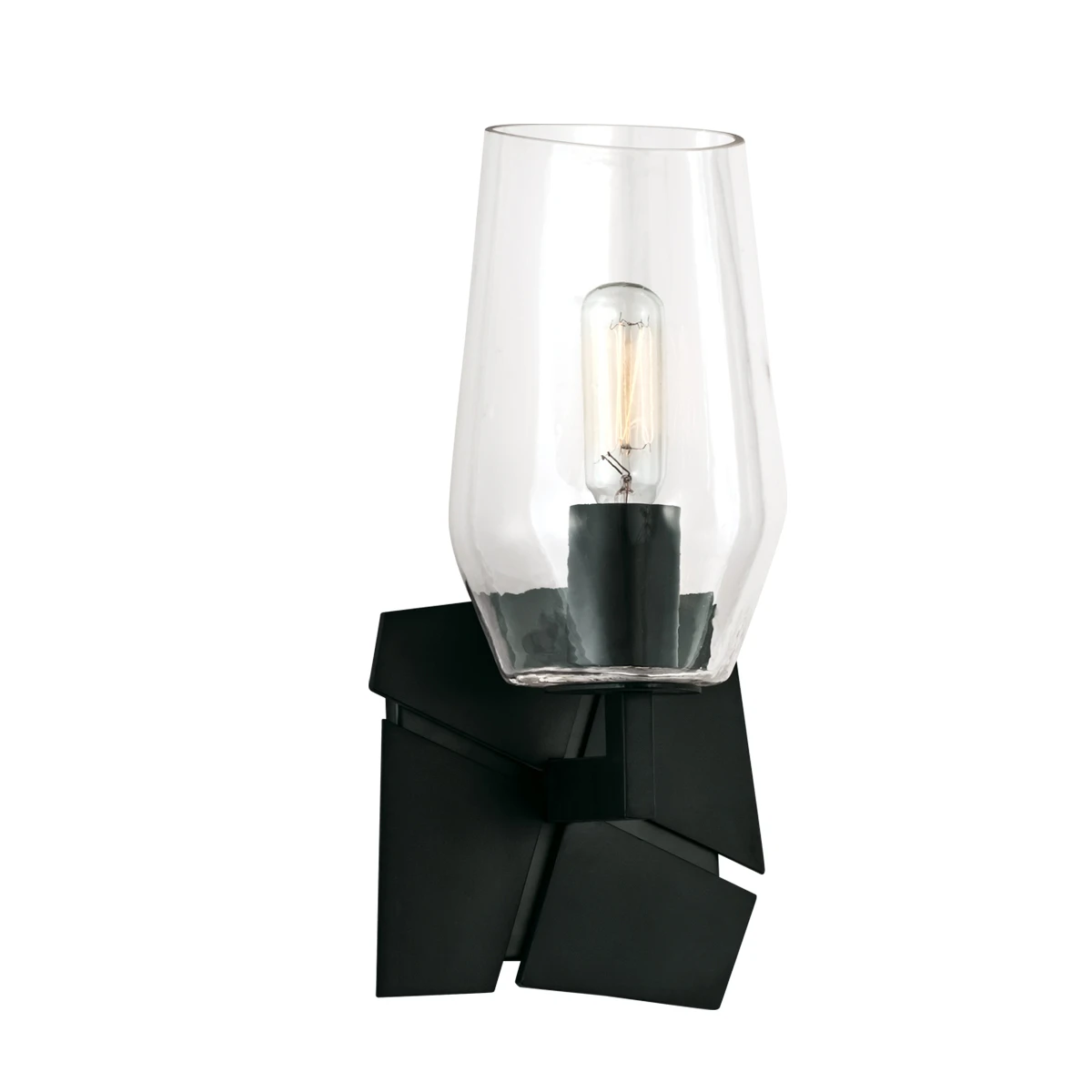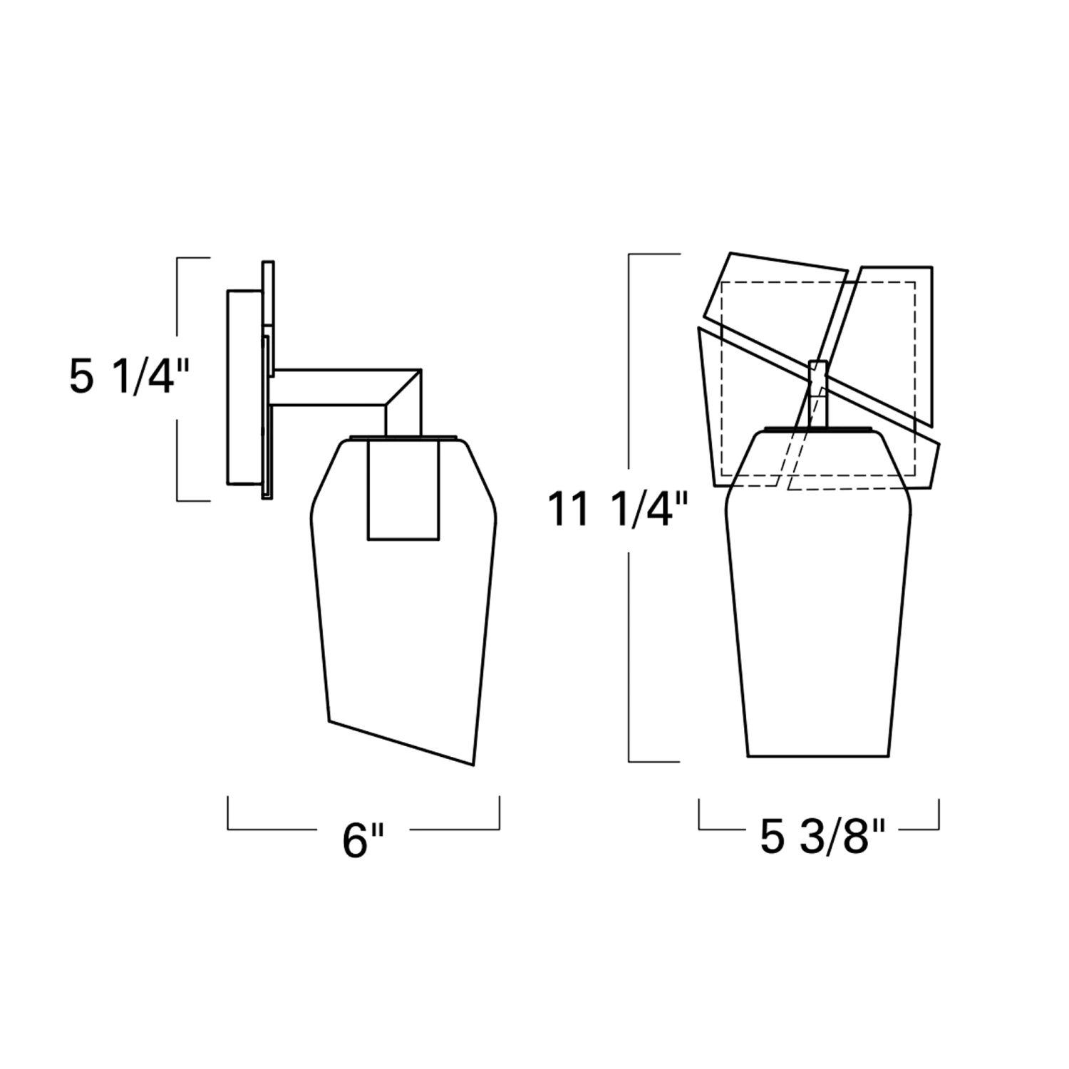The Gaia Wall Sconce features a Chrome or Matte Black finish and a Clear glass diffuser. Backplate: 4.25 inch square. Glass size: 7 inch X 3.25 inch. UL listed for damp location.