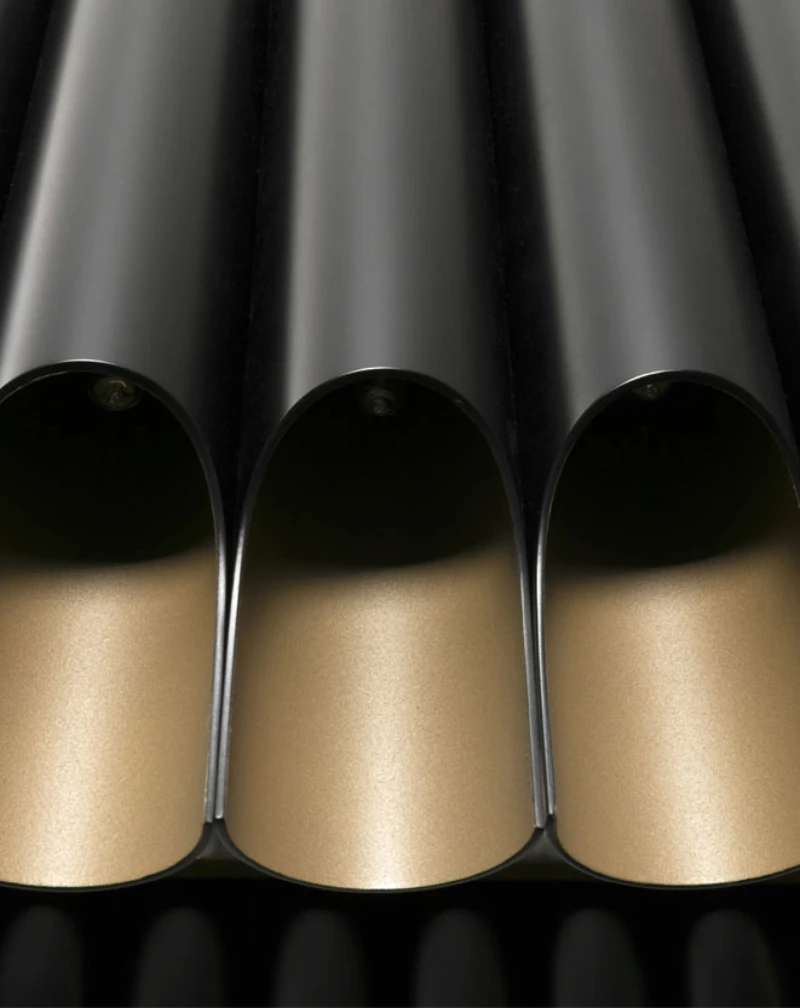 The Galliano Linear Pedant glows with luxury. Minimalist in design, but maximal in performance, the Galliano’s smooth Matte Black finish and Brass details are illuminated by the 108 bulbs that mesmerize once illuminated. Place the Galliano over the dining table, in a hotel’s entrance foyer, or anyplace where a midcentury modern touch is needed.