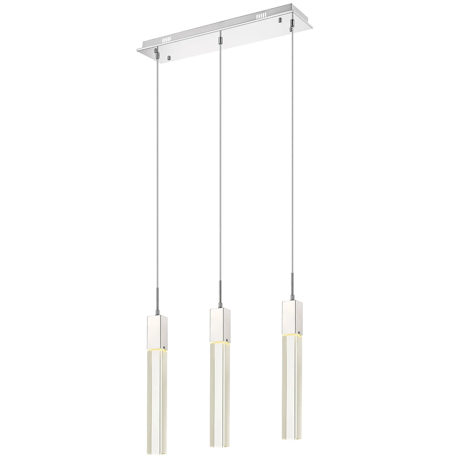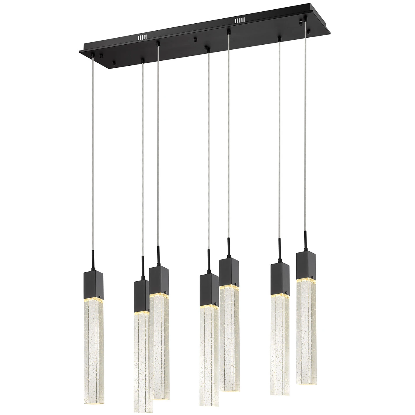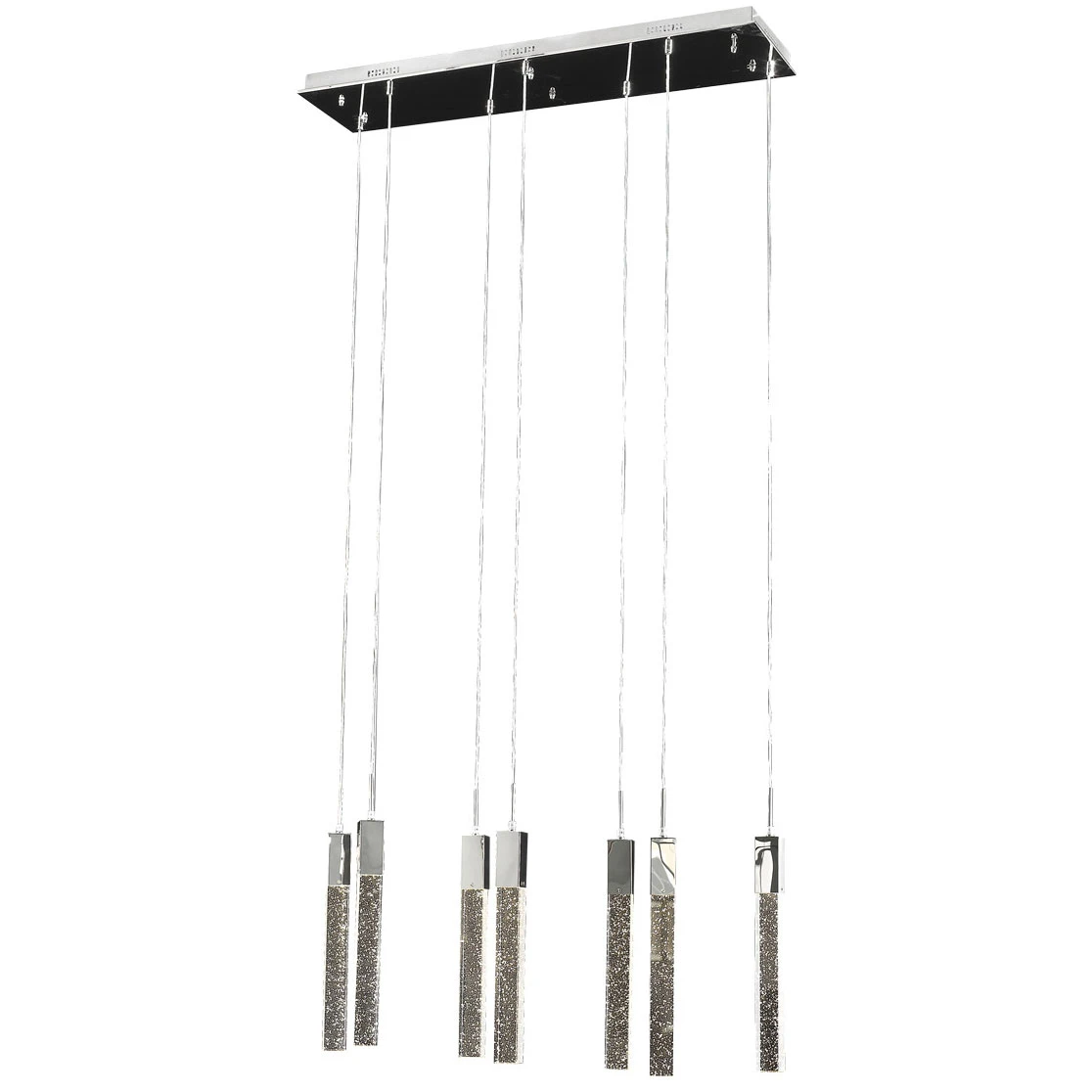 The Glacier Linear Multi Light Pendant offers a regal presence and glamorous vibe that will enhance any interior. The light source housed within the top of the pendant shines downwards through rectangular crystal prisms to create a dramatic sparkle. Available with solid Clear or Clear Bubble crystal diffusers.