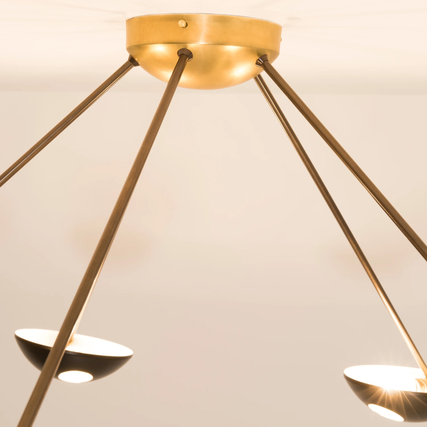The Helios Penta Ceiling Light’s unique shape and warm character pays tribute ancient sundials. Handmade in Italy, the Helios Penta balances the brilliance of Brass against a deep Black to add life and decorative interest to your lighting game. Place this fixture over the dining table or in an entryway foyer to brighten up your ambience. Available with a Brass, Blackened, Bronze, Chromed Lucid, Chromed Opaque, Polished, Polished Brushed, Unpolished Balanced, Unpolished Balanced, and Unpolished Opaque finish with Black shades. Canopy diameter 5.5 inches. UL listed.